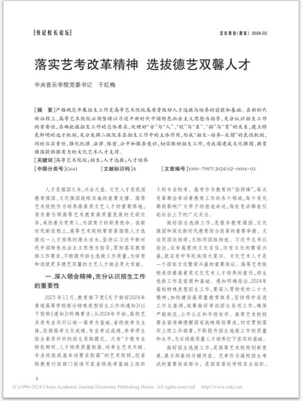 【北京教育】于红梅:落实艺考改革精神 选拔德艺双馨人才