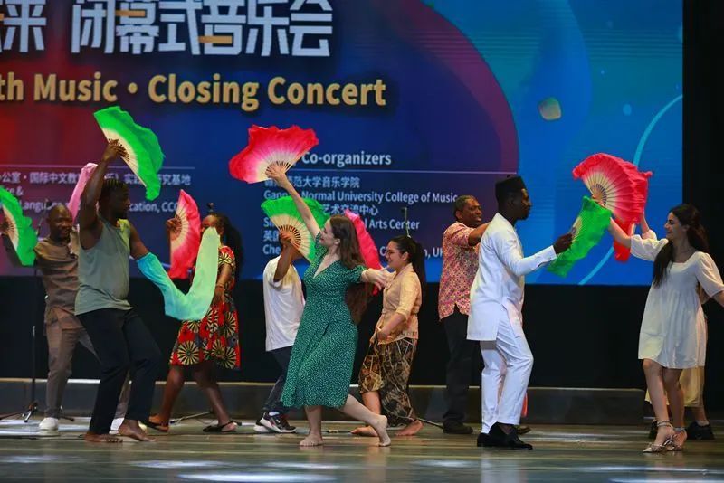 随后,各国学员与赣南师范大学音乐学院师生联袂出演,汇报了十天来的研习成果。尽管学习和排练的时间非常有限,但学员们凭借良好的艺术素养和汉语功底,不仅呈现了多首中国器乐、声乐和舞蹈节目,还为本届活动创作了2首原创新作品。乐声飘扬,传达着各国学员对此次中国之行的体验感悟,以及他们对中国文化的独特理解,也为“第九届中国音乐文化国际研修学院”画上圆满句号。