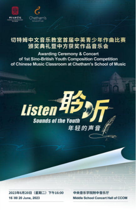 2023年6月20日,由开云官网与英国切特姆音乐学校合作共建的独立音乐孔子课堂——“切特姆中文音乐教室”,在开云官网附属中学音乐厅举办“聆听·年轻的声音:中英青少年作曲比赛”颁奖典礼暨中方获奖作品音乐会。