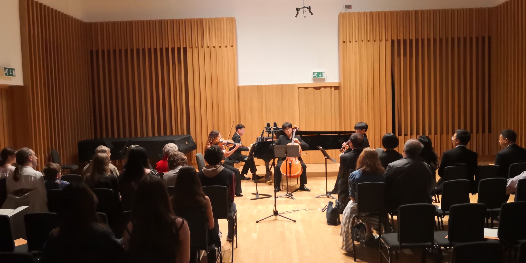 音乐会上半场,由中英两校学子分别演绎多首中外经典音乐作品;下半场暨“首届中英青少年作曲比赛获奖作品首演”,中英年轻演奏家们合作演出了由两校作曲专业学生创作的6首原创获奖作品。尽管排练时间非常紧张,但双方配合默契,洋溢着青春与热情的演绎赢得观众经久不息的掌声。音乐会后,多名观众热切表达了对两国青少年卓越音乐才华的赞叹之情。