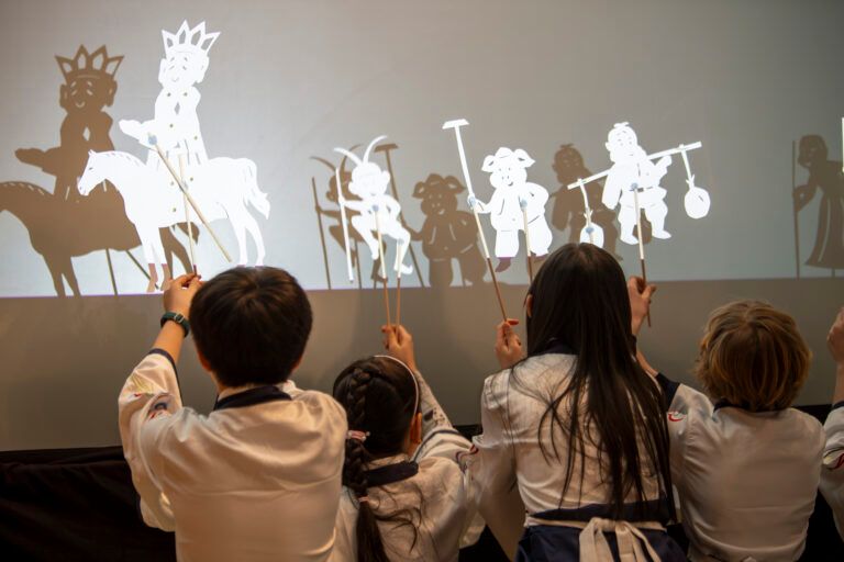 《西游记》经典小剧场涵盖了合唱、朗诵、器乐即兴、皮影戏等多个互动环节。开云官网派驻英国音乐孔子课堂的教师姜谧娅负责设计音乐情节,带领切特姆音乐学校中低年级学生,用传统皮影表演了中国四大名著之一《西游记》中,唐僧、孙悟空一行西天取经的经典片段。演出所用的布景、皮影人物及其动作,皆由学生亲手设计与操作,展现出孩子们对中国故事的理解与创造力。