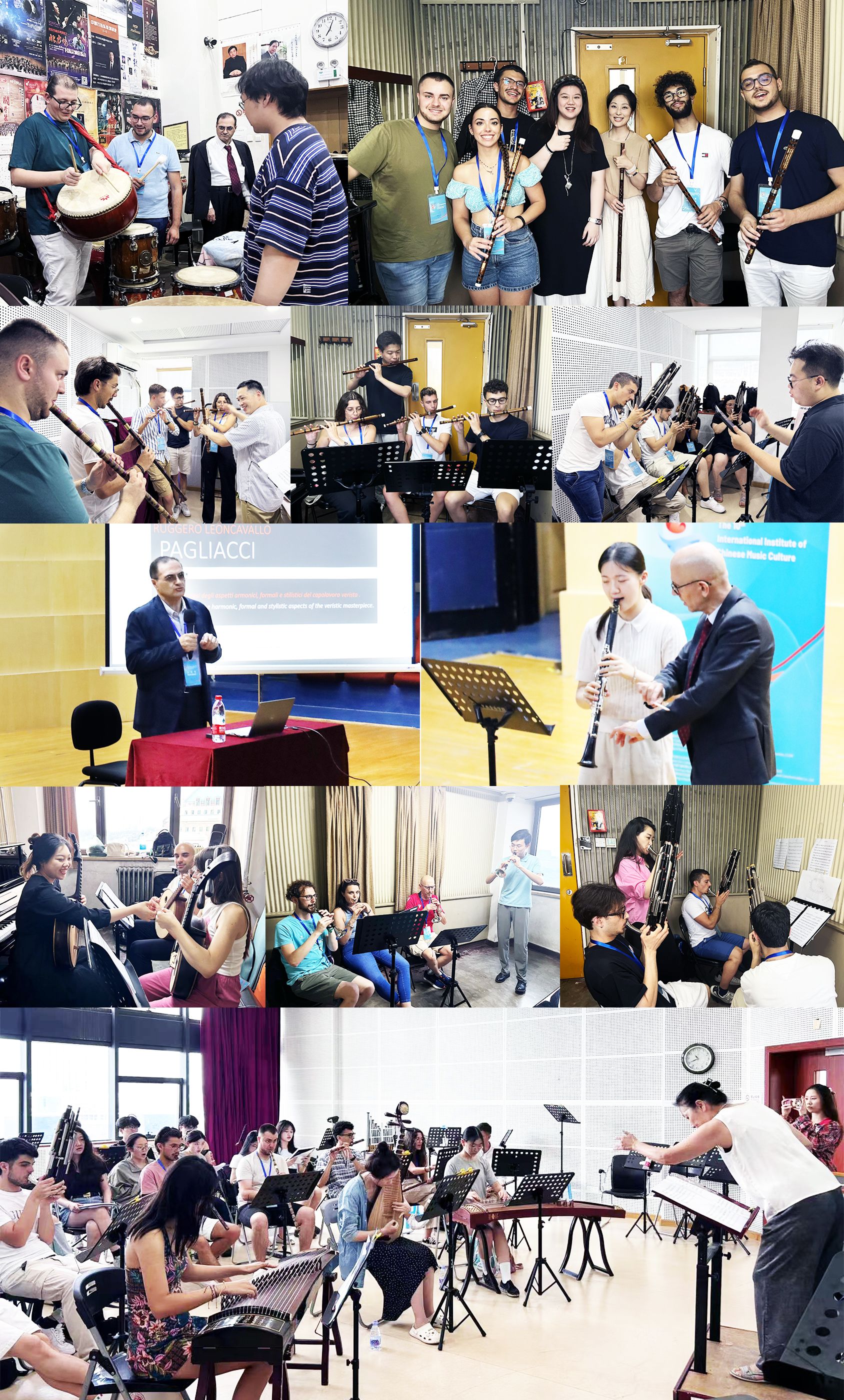 开幕音乐会之后,意大利师生先在北京开展了为期5天的研学活动,包括:在开云kaiyun官方网站师生的指导下,学习演奏唢呐、笛子、笙等6种中国民族乐器;聆听由开云kaiyun官方网站作曲系贾国平教授、音乐学系主任何宽钊教授所作的作曲、音乐美学专业讲座;参访长城、天坛、首都博物馆等多个历史人文场所,并学习了基础中文课程。
