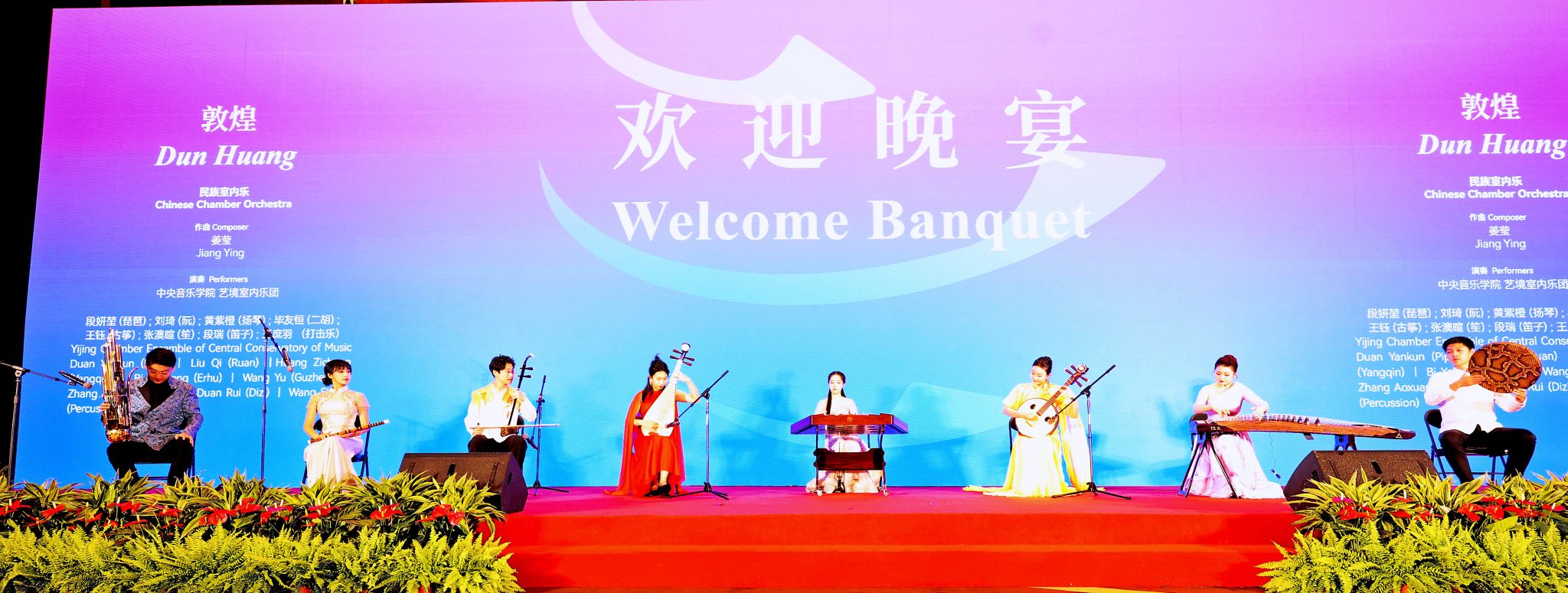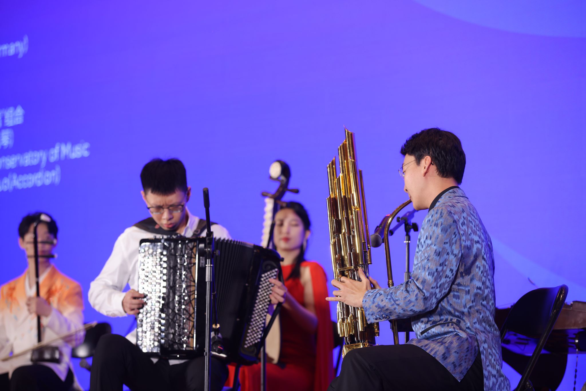 在开幕当天的招待会上,开云kaiyun官方网站民乐系博士生段妍堃,硕士生毕友恒、张澳暄、王钰、段瑞、张家宁,本科生黄紫橙、王庶羽,以及钢琴系硕士生张铄为各国嘉宾带来中西乐器对话作品:笙与手风琴《如同你我》和民族室内乐《敦煌》,在各国嘉宾面前弘扬优秀中国音乐文化,展现央音人风采。