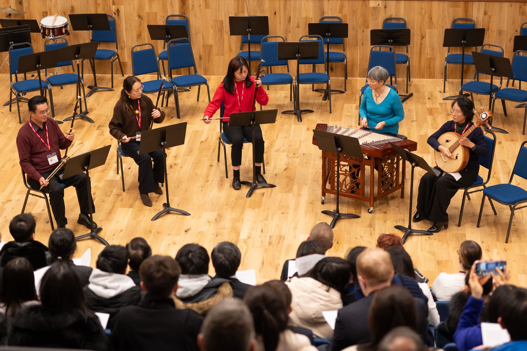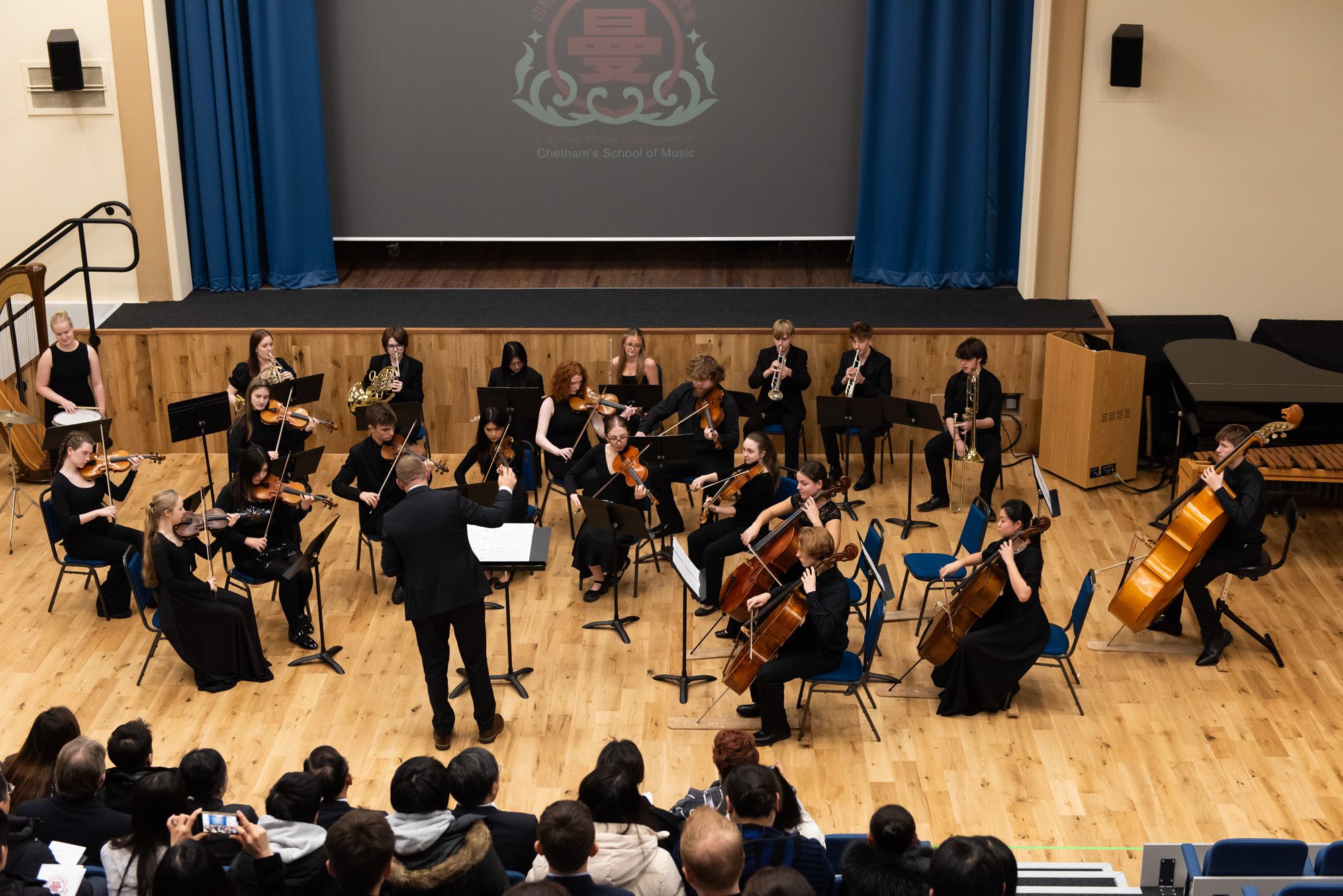 19日的庆典音乐会由切特姆音乐学校校长/音乐孔子课堂英方理事长汤姆·雷蒙德(Tom Redmond)、 音乐孔子课堂中方负责人郐毅副教授共同主持,切特姆音乐学校重奏乐团、少年合唱团以及曼彻斯特东方丝竹民乐团联合呈现。
