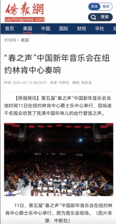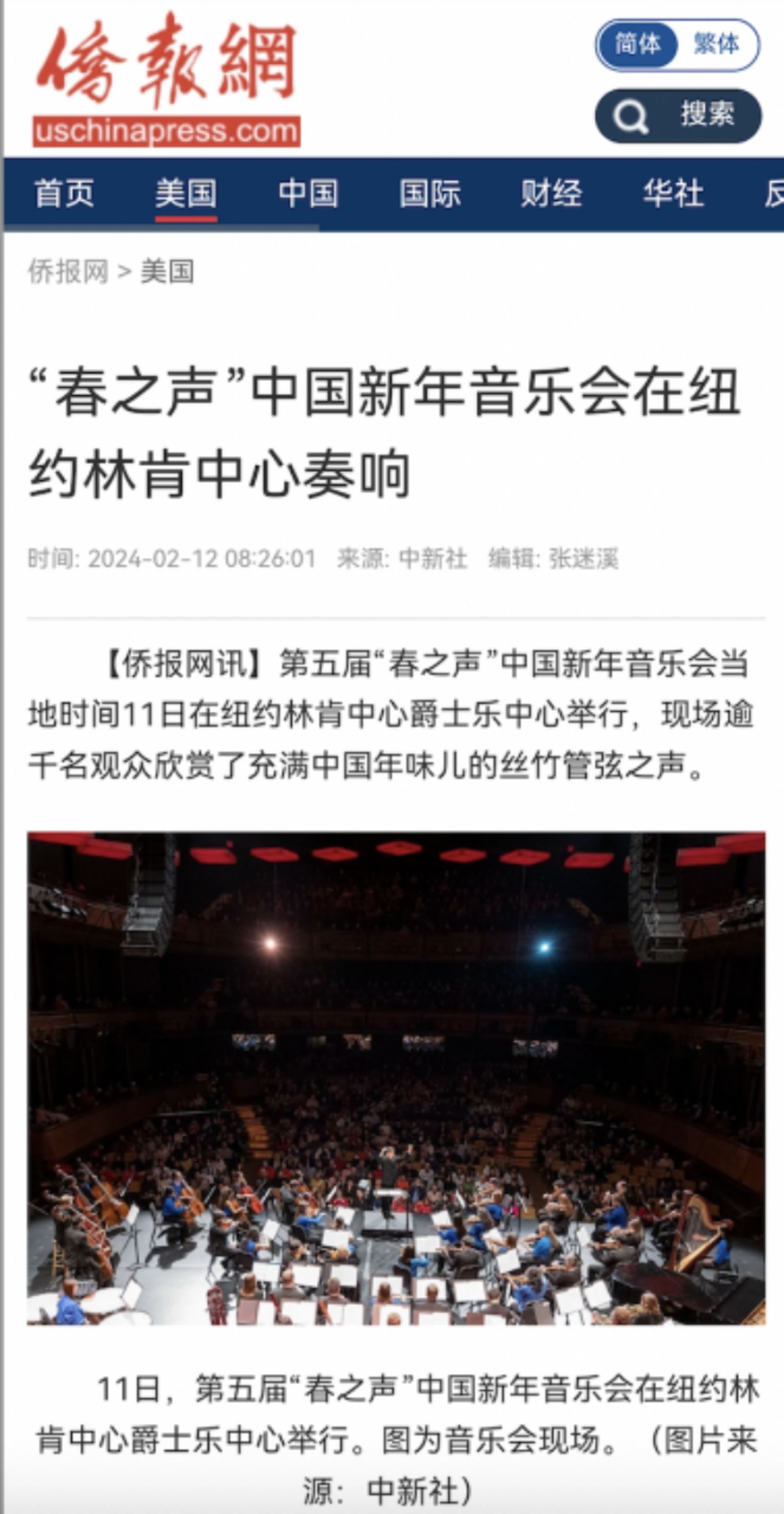 新华网、中国新闻网、中国日报、侨报网、世界日报等媒体对本次音乐会进行报道。