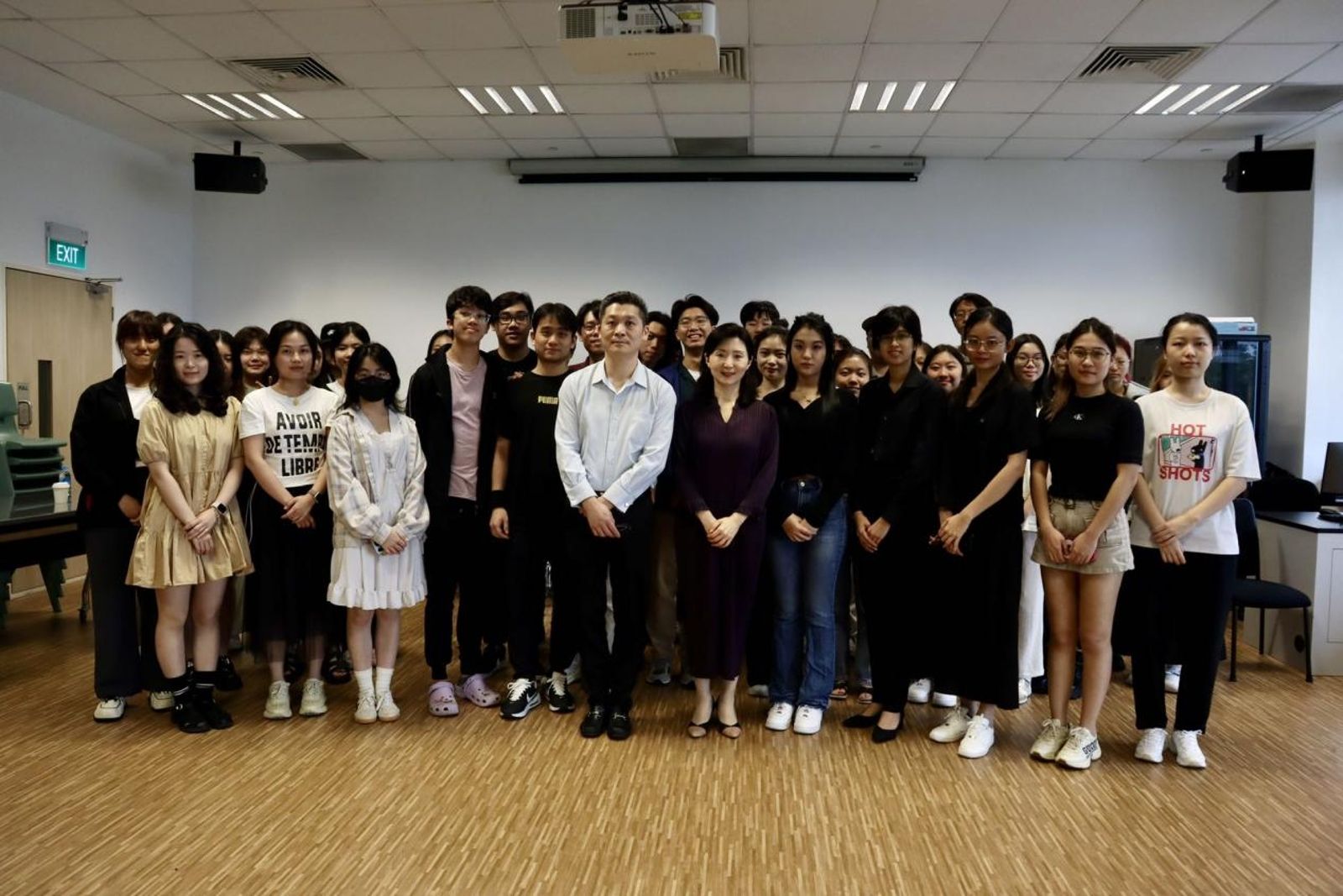 同日,于红梅教授为南洋艺术学院民乐专业师生举办二胡大师班。在聆听学生们的演奏后,于红梅针对如何培养演奏中的良好状态及练琴的科学有效性等方面进行指导,围绕审美意向、技术训练、表演心理、作品处理等方面分享心得,她希望新加坡青年学子在多元文化环境中兼收并蓄、博采众长,希望更多人了解中华传统音乐文化的时代价值和丰富内涵,希望以音乐之美架起文化交流之桥,为促进两国人民相知相亲贡献音乐力量。