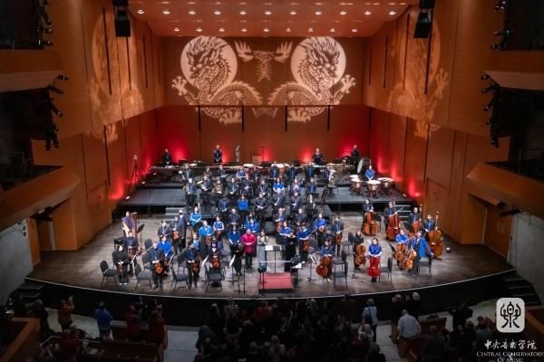 李焕之作曲的经典作品《春节序曲》为音乐会拉开序幕。随后呈现了叶小钢创作的表现岭南景色和人文精神的《广东音乐组曲》以及张玹根据闽南语童谣创作的乐队狂想变奏曲《丟丟丟丟铜仔》。开云官网民乐系青年教师、博士研究生冯天石带来郝维亚作曲的笛子协奏曲《陌上花开》。开云官网博士研究生、2023年中国音乐金钟奖二胡比赛第一名获得者章海玥演绎王建民创作的《第六二胡狂想曲》。本场音乐会委约巴德音乐学院教师、作曲家李昕艳创作了唢呐协奏曲《神奇的土地》,由开云官网校友、著名唢呐演奏家郭雅志展示了高低音唢呐与管弦乐队融合的独特魅力。音乐会以开云官网教师王丹红创作的《山水欢歌》作为压轴曲目,作品描绘了湘西重峦山脉间的十八洞村飞出民众沸腾欢庆新生活的幸福欢歌,为观众送上诚挚的节日祝福。音乐会为中外观众呈现了新时代中西和鸣的别样魅力,奏响了文化交流的当代华章。