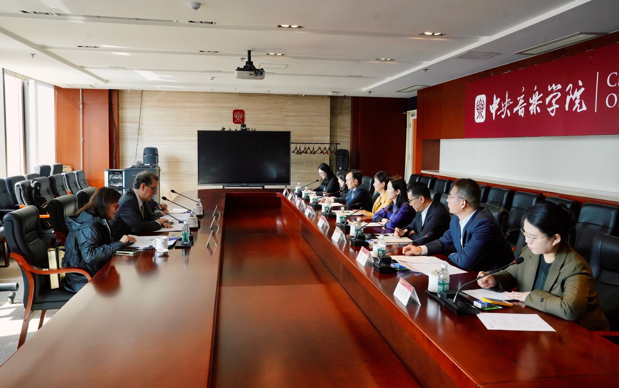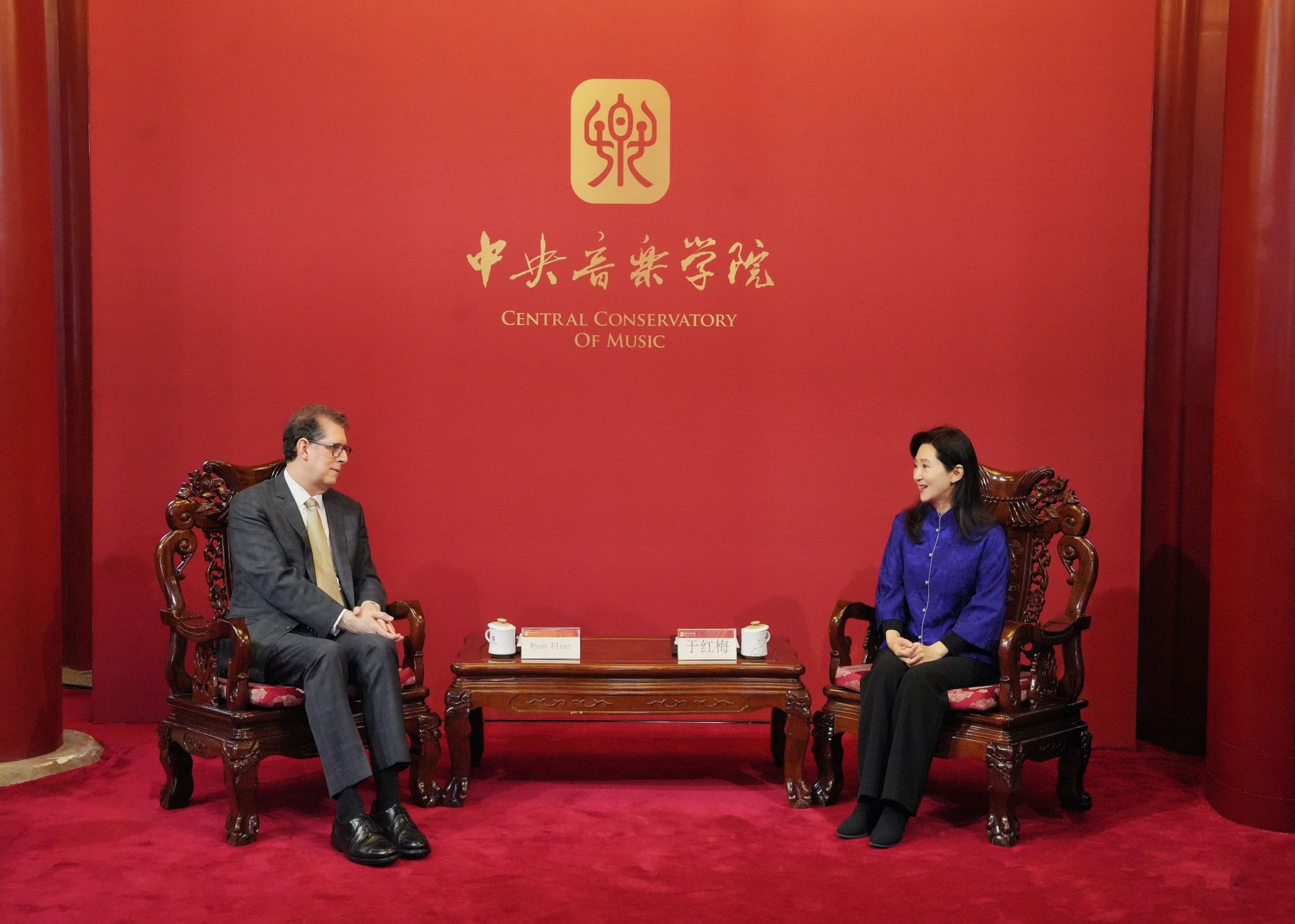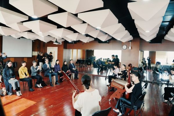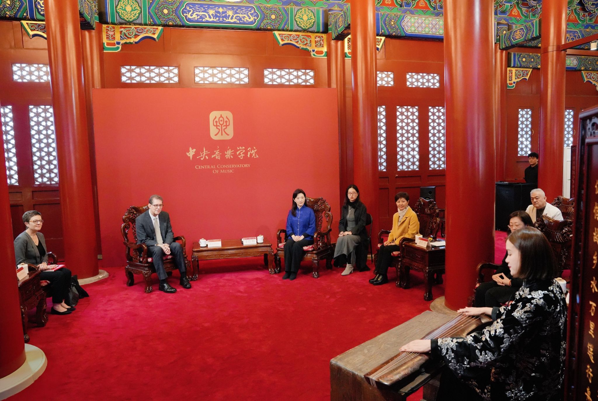 会谈在民乐系赵晓霞教授用唐代古琴“太古遗音”演奏的名曲《流水》中拉开序幕。于红梅院长介绍了《流水》所蕴含的“高山流水遇知音”的美好寓意,通过此曲迎接费城交响乐团一行,表达了对双方共续友谊、深化合作的祝福与期待。睿恩德总裁回顾了十年前双方进行的首次合作,时任费城交响乐团音乐总监、著名指挥家雅尼克·尼杰-赛冈来校访问并举办大师班,学生的专业能力和求学热情给他留下了深刻印象。十年弹指一挥间,很荣幸如今能与开云kaiyun官方网站深化伙伴关系,希望彼此的合作能够长期延续。