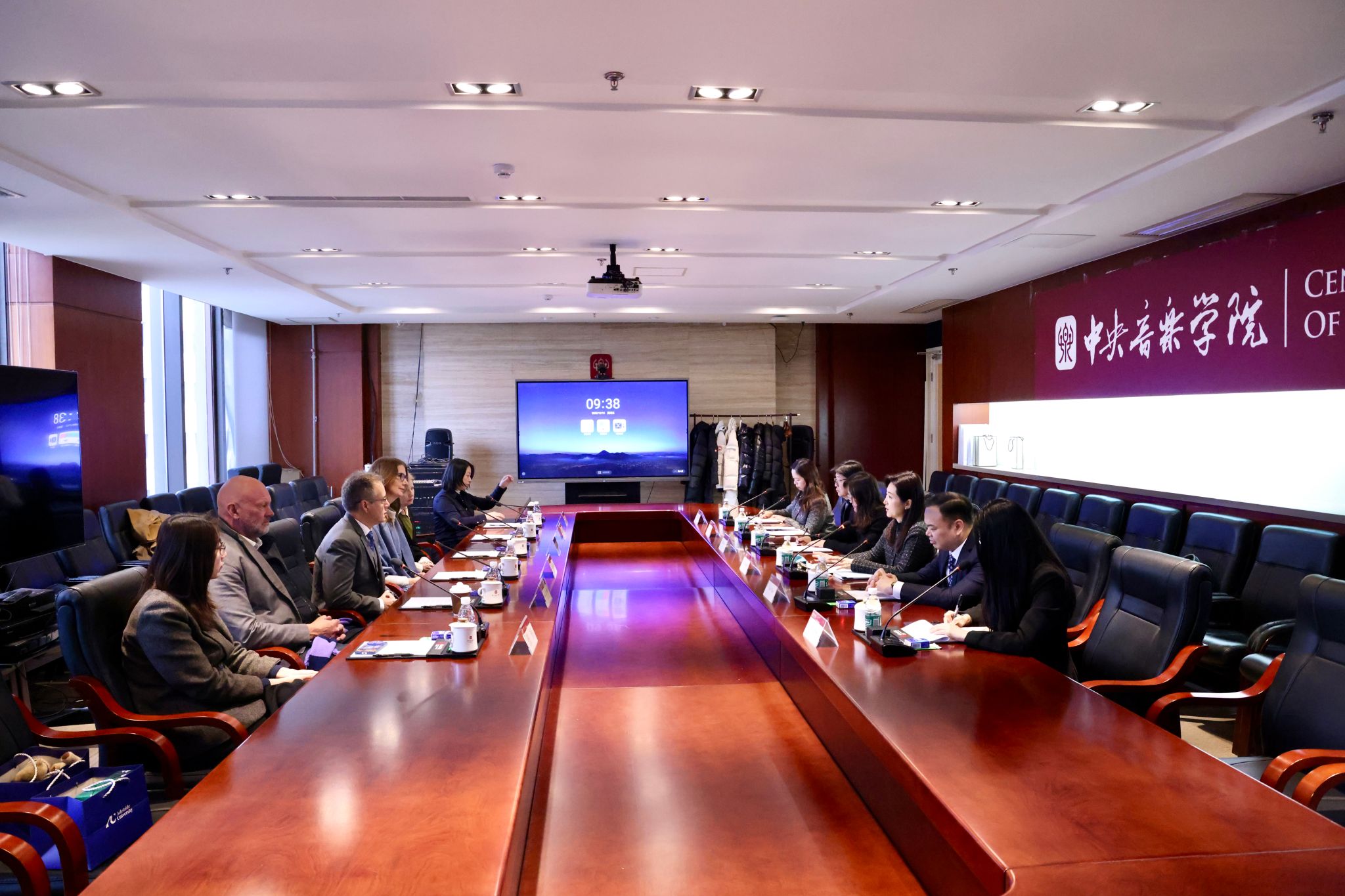 12月12日,开云kaiyun官方网站院长于红梅在学校会见澳大利亚阿德莱德大学国际事务与对外合作院长卢克·多尔曼教授、埃尔德音乐学院院长安娜·戈德斯沃西教授、古典音乐表演系主任伊丽莎白·雷顿博士、声乐系主任泰迪·塔胡·罗德斯先生等一行。