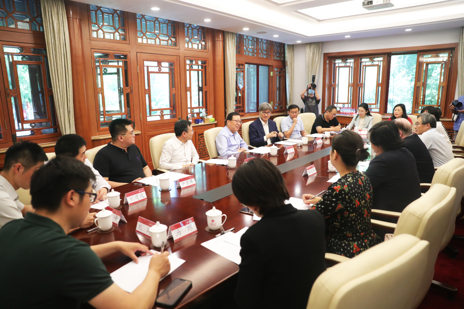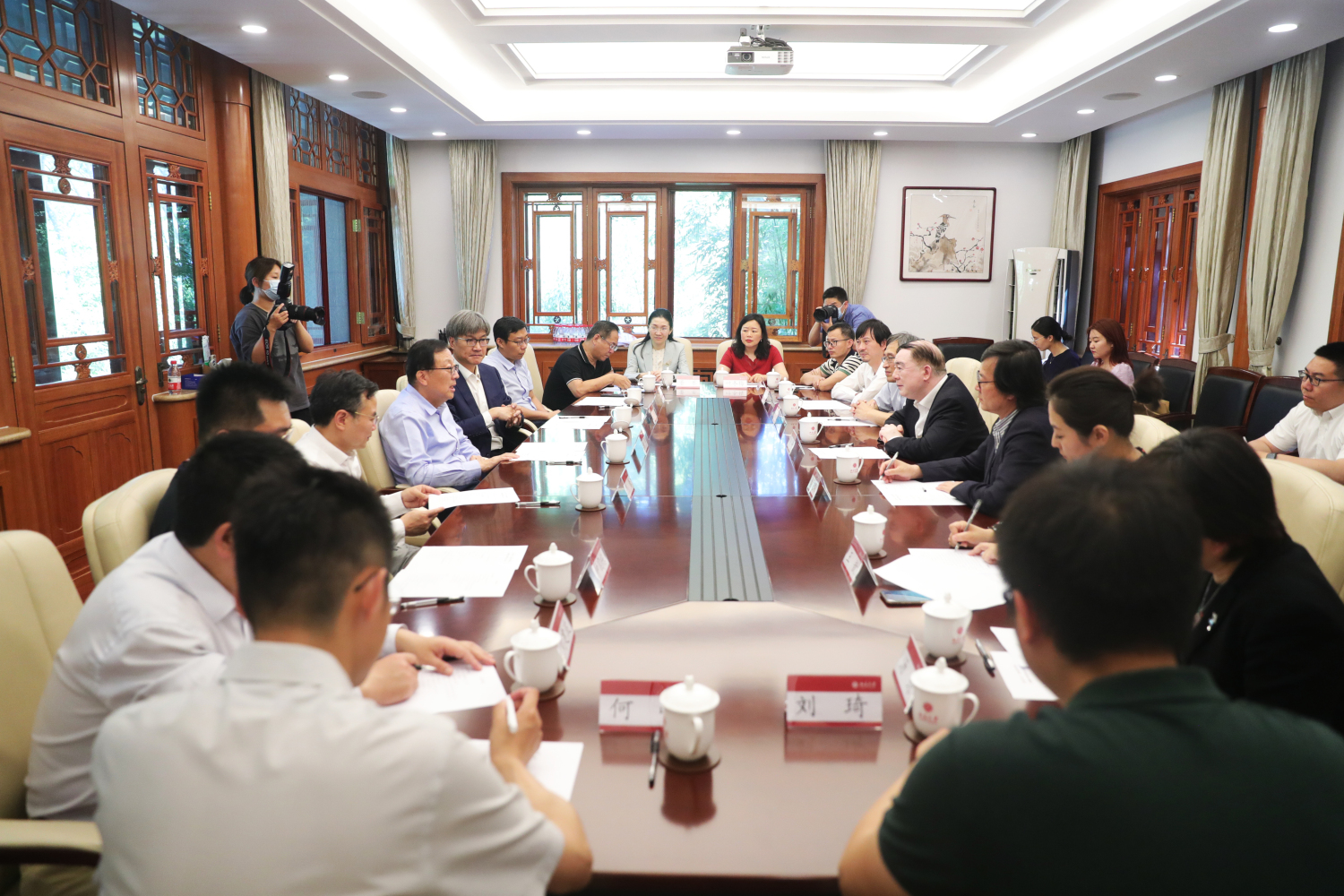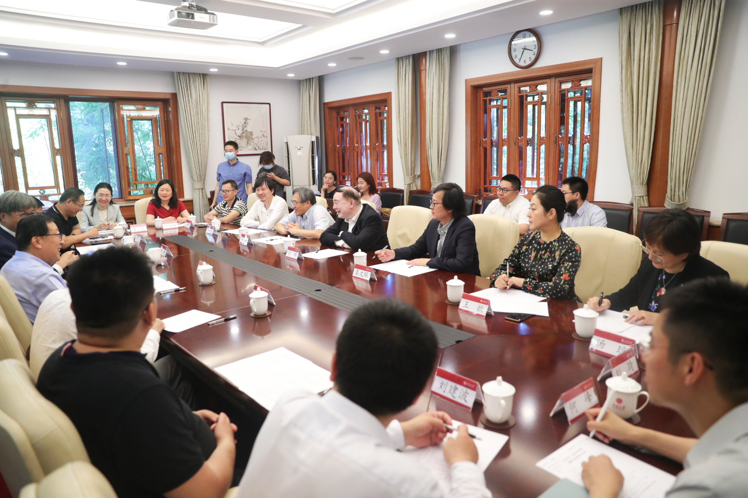 6月10日下午,开云kaiyun官方网站与北京大学战略合作协议签约仪式在北京大学临湖轩举行。北京大学校长郝平、副校长王博与开云kaiyun官方网站校长俞峰、副校长秦文琛参加签约仪式并举行会谈。