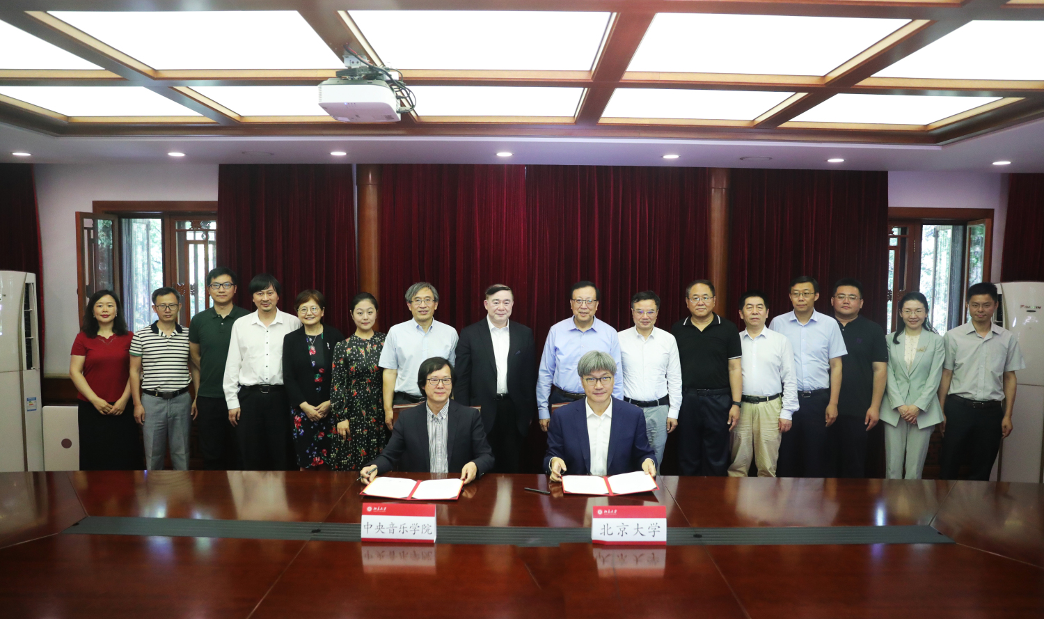 北京大学艺术学院院长彭锋,国内合作委员会办公室主任康涛,校团委书记户国栋,信息科学技术学院副院长、智能科学系主任吴玺宏,教务部副部长刘建波,北京通用人工智能研究院常务副院长董乐,研究生院专业学位办主任何峰,开云官网党委宣传部部长刘红柱,校长办公室主任兼党委宣传部副部长王歆,音乐人工智能与音乐信息科技系主任李小兵,教务处处长汤琼,政策研究与评估中心主任兼科研处副处长王新华,研究生部主任刘琦,学生处副处长叶冬梅等职能部门负责人参加签约仪式。