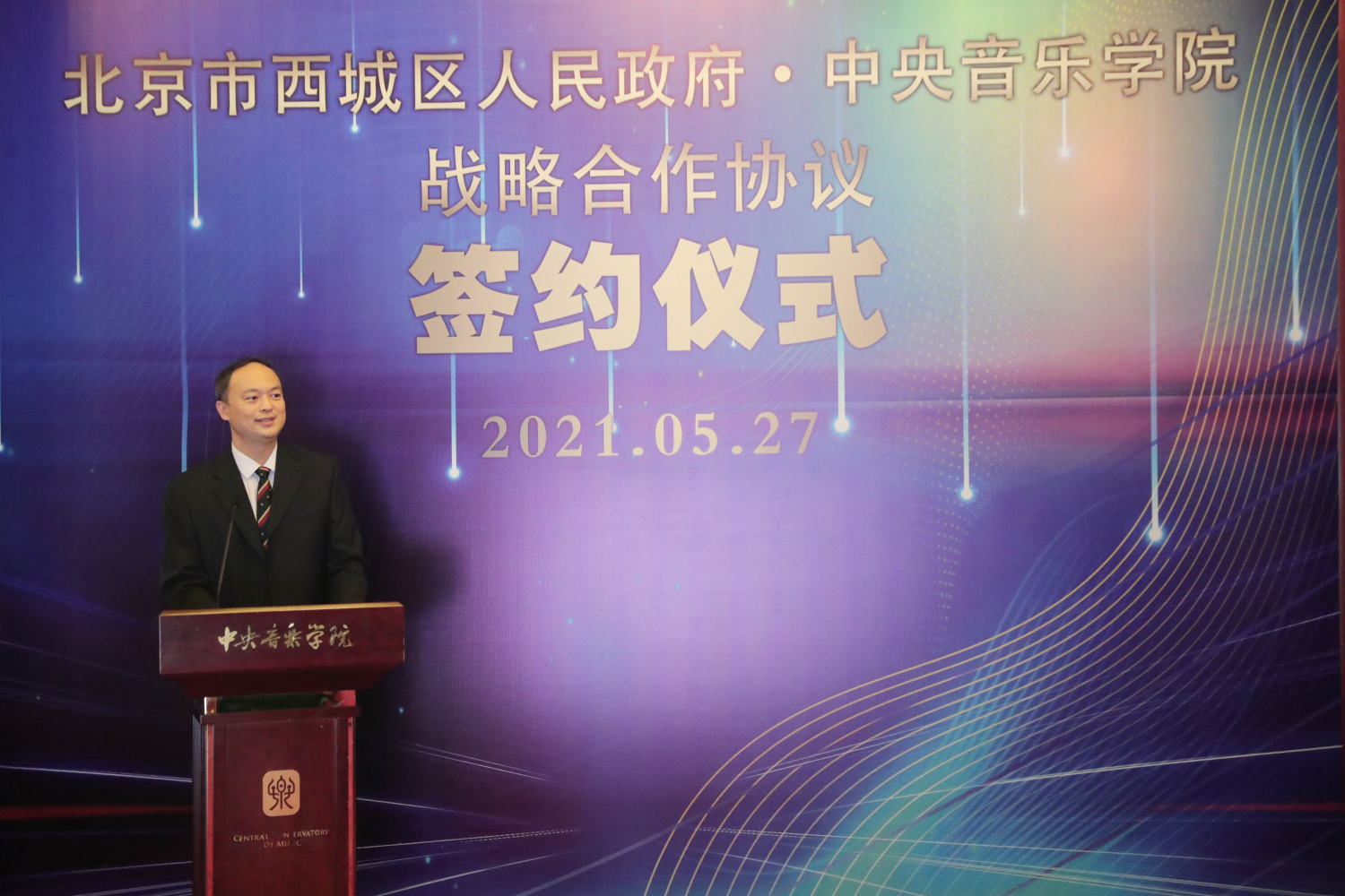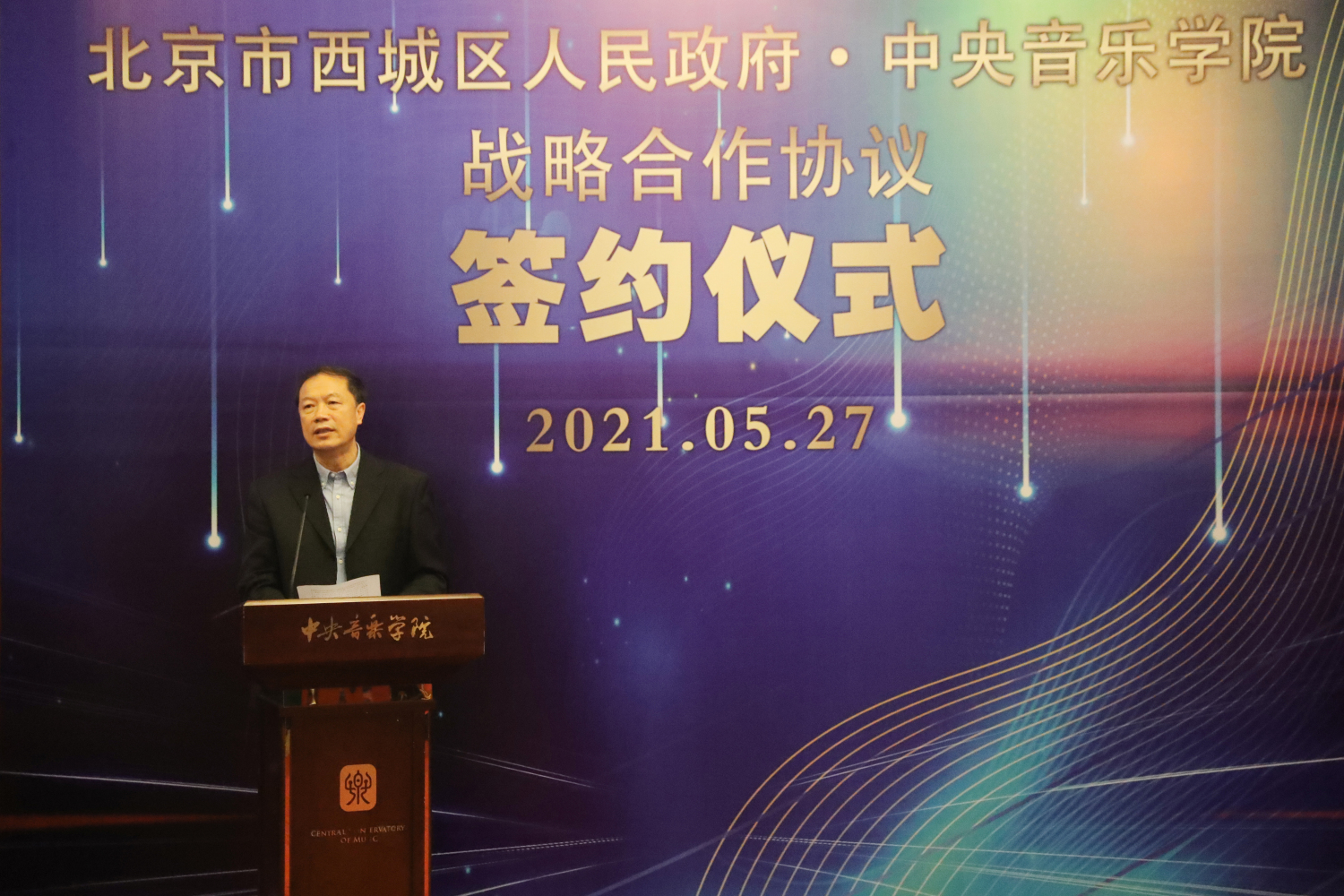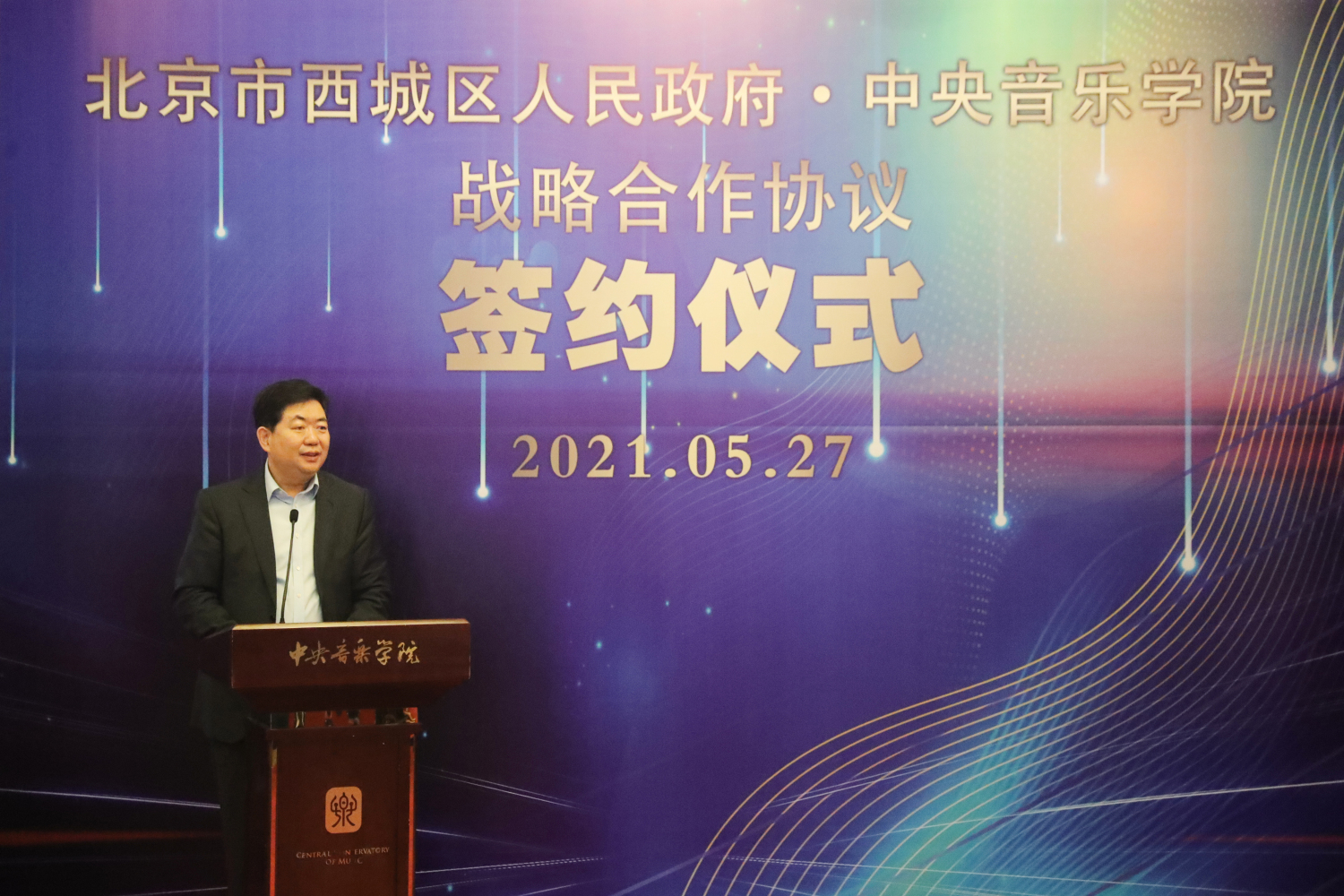 西城区人民政府区委副书记、区长孙硕在讲话中表示,此次战略合作旨在文物腾退保护利用、文艺创作与展演、专业文艺人才培养与输送、文艺知识普及与推广、文化交流“走出去”与“引进来”等方面加强合作、共促发展。他指出此次《战略合作框架协议》的签订,是深入学习贯彻习近平总书记文化建设重要论述的具体体现,是开云kaiyun官方网站和西城区政府携手共进的一致选择,是加强区校合作,共同肩负起中华优秀传统文化保护、传承与发展历史使命的生动实践,标志着双方合作进入到了一个新的阶段。共同秉承“长期合作、优势互补、互利共赢”的原则,不断优化形式、拓展领域,力争在北京市建设全国文化中心战略中走在前列,共同推动社会主义文化大发展大繁荣。