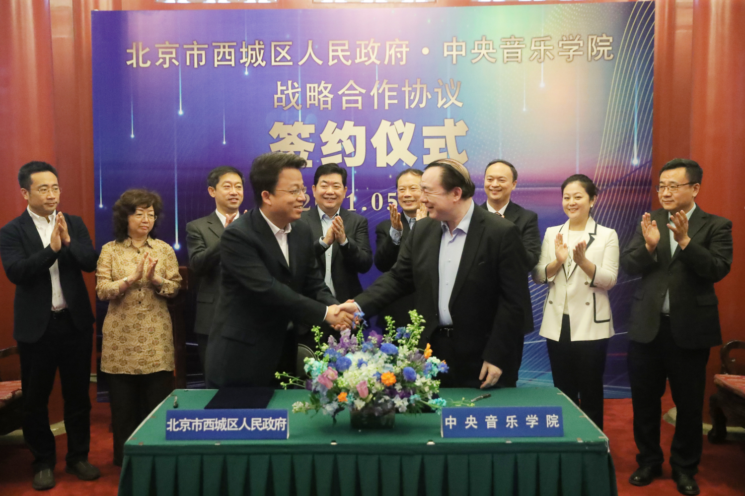 开云kaiyun官方网站校长俞峰与西城区副区长王波签署《战略合作框架协议》。西城区区长孙硕与开云kaiyun官方网站党委书记赵旻,副校长柯扬,区政府办主任桑硼飞,区教委主任王攀,区文旅局局长靳真,开云kaiyun官方网站院长办公室主任王歆,校园建设与管理处处长赵海见证签署仪式。