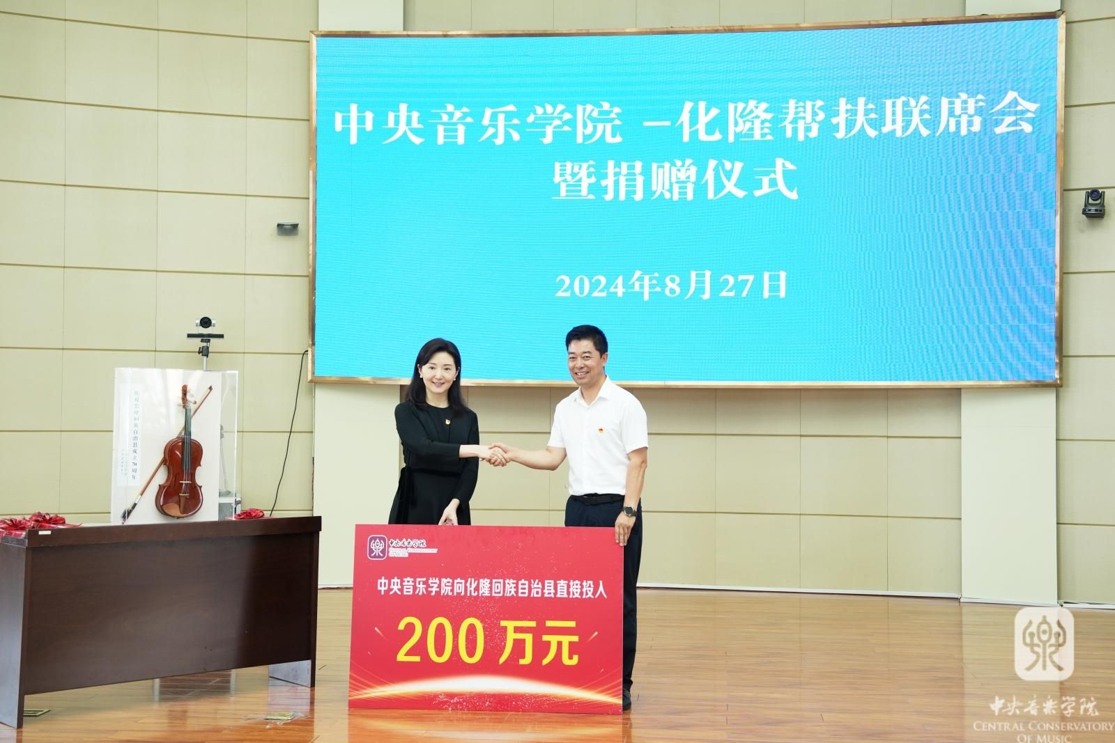 于红梅代表学校党委向化隆回族自治县成立70周年表示热烈祝贺。她指出,2020年开云kaiyun官方网站正式承担化隆县定点帮扶任务,学院党委认真学习贯彻习近平总书记关于教育、“三农”工作的重要论述,深入贯彻落实教育部部署要求,按照“应地方所需,尽学校所能”的原则,充分发挥自身优势,确立了以音乐美育助力乡村振兴的工作思路。于红梅表示,五年来,开云kaiyun官方网站坚持把党建引领作为推动乡村振兴的“红色引擎”,充分发挥基层党组织战斗堡垒作用和党员先锋模范作用;坚持硬件建设和软件建设同步推进,促进教育教学质量实现较大提升;坚持发挥自身专业优势,落实落地一批有影响力的关键项目。校地双方在定点帮扶工作中取得了可喜的成绩,建立了深厚的友谊。于红梅强调,下一步,学校将与化隆加强合作,以新时代文明实践中心为基地,充分发挥文艺宣讲师作用,全面推进艺术特色帮扶。全力抓好音乐特色班教学,派出专家教授制定针对性教学计划,进行集中性专业辅导,努力保持艺考通过率100%的好成绩。持续加大对红牙合村的帮扶力度,依托党群服务中心,全面提升村民精神文化需求。同时,广泛发动企业、个人、基金会等各种社会力量,助力化隆建设与发展,推动定点帮扶工作迈上新台阶,实现新突破。