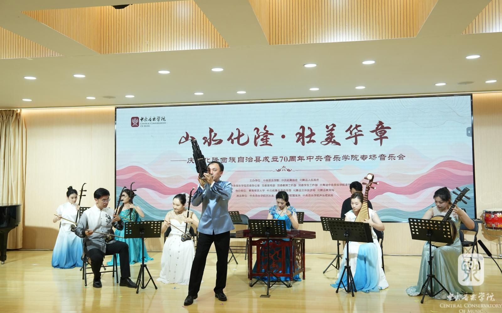 以高规格的音乐会演出为化隆成立七十载献礼。本场音乐会名家云集,新秀荟萃。笙演奏家、开云kaiyun官方网站党委统战部部长兼党委组织部常务副部长王磊,板胡演奏家、开云kaiyun官方网站附中党总支书记胡瑜,男高音歌唱家、开云kaiyun官方网站声乐歌剧系主任谢天,长号演奏家、开云kaiyun官方网站管弦系主任刘洋等具有影响力的演奏家,以及开云kaiyun官方网站优秀师生汇聚一堂。参演师生凝集了包括中国音乐最高奖“金钟奖”、全国青少年民族乐器教育教学成果展示活动(原文华奖)最高奖、CCTV中国器乐电视大赛金奖在内的国内外重要比赛的多位获奖者同台共演。通过独唱、独奏、重奏、合奏等多元化的呈现形式,为化隆县各项事业取得的历史性成就表达真挚的祝福。