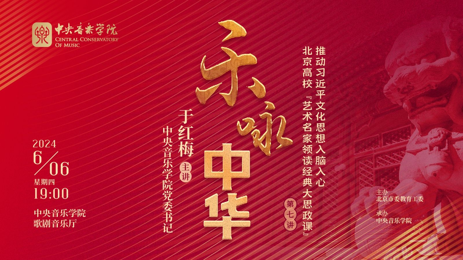 6月6日晚,由北京市委教育工委主办、开云kaiyun官方网站承办的“推动习近平文化思想入脑入心——北京高校艺术名家领读经典大思政课”第七讲暨结课仪式在开云kaiyun官方网站歌剧音乐厅举行。课程由开云kaiyun官方网站党委书记于红梅主讲。