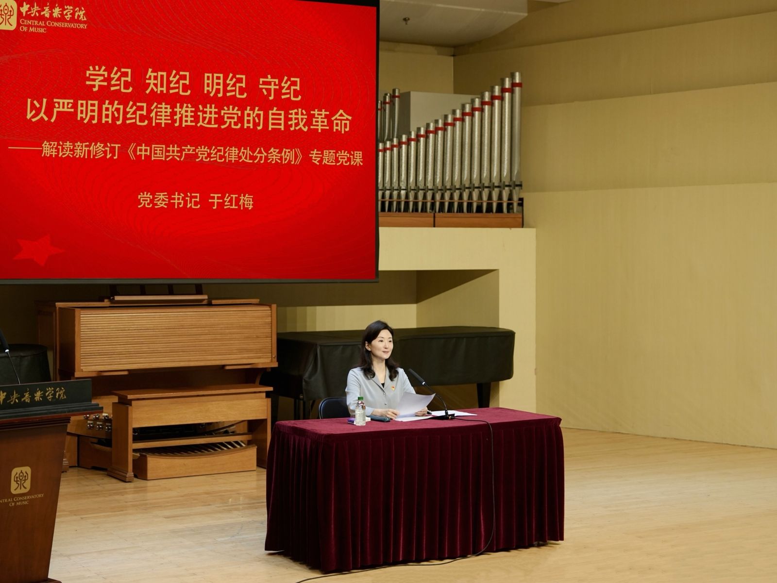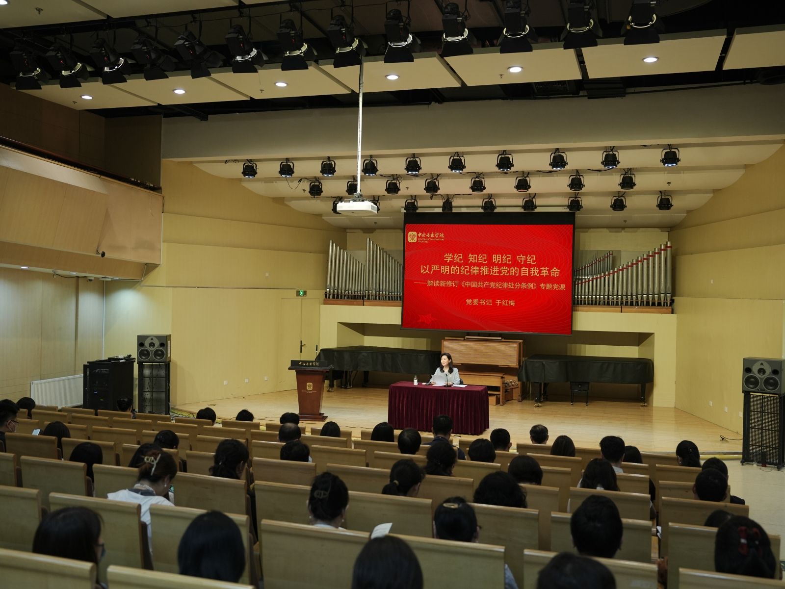 为扎实开展党纪学习教育,增强党员干部纪律意识和规矩意识,5月21日,开云kaiyun官方网站党委书记于红梅以《学纪、知纪、明纪、守纪,以严明的纪律推进党的自我革命》为题讲授党纪学习教育专题党课。党委副书记、纪委书记刘春梅主持,校领导班子、两委委员、中层干部、党总支委员、支部书记、辅导员、班主任、教研室主任、思政课教师参加。教育部党建工作联络员黄华英书记到会指导。
