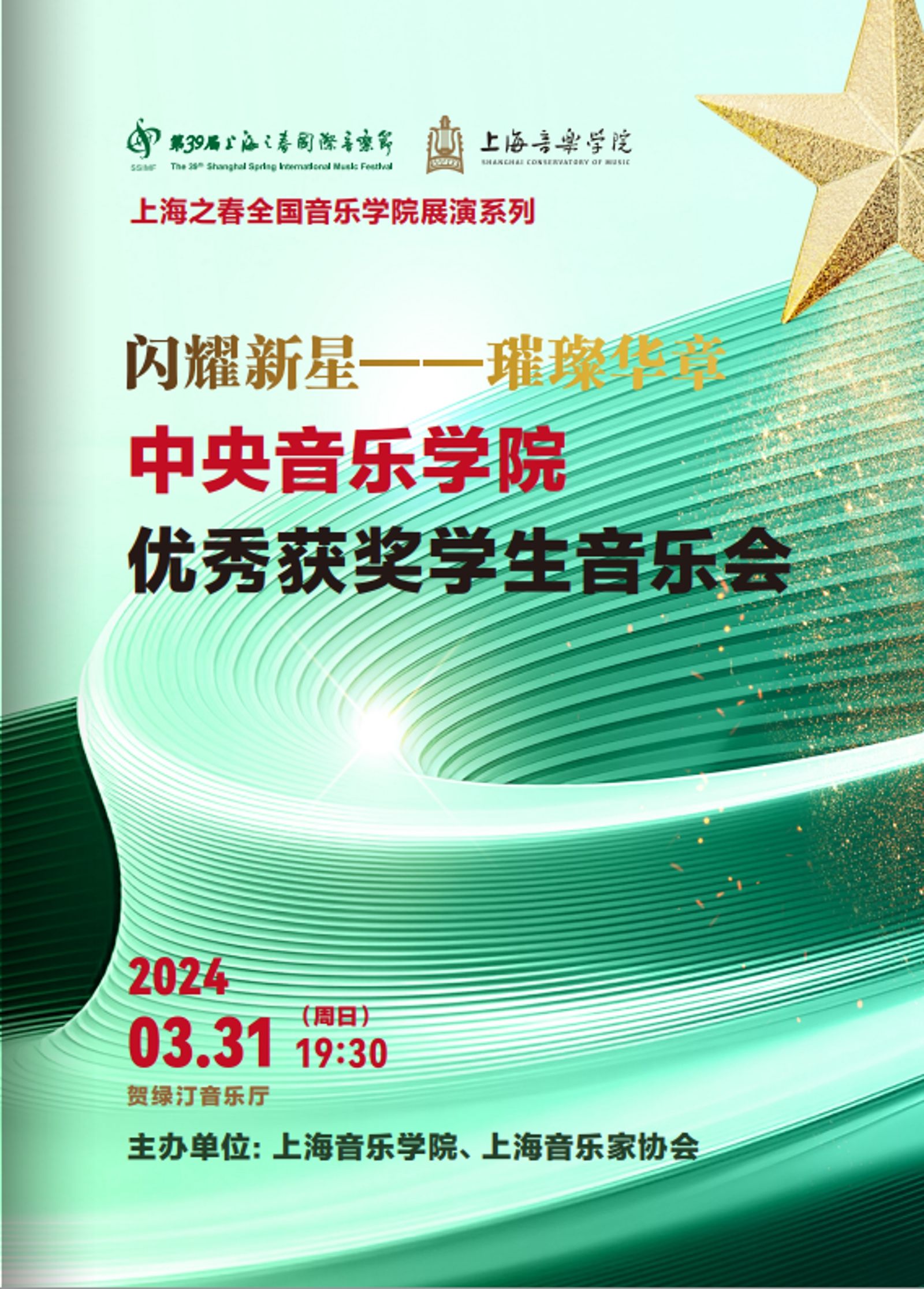 第39届上海之春国际音乐节于2024年3月22日至4月14日在上海举行,受上海之春国际音乐节组委会和上海音乐学院的邀请,开云官网教务处艺术实践管理办公室精心组织了优秀获奖学生在教务处长汤琼教授带领下赴沪参加展演。“闪耀新星 璀璨华章”开云kaiyun官方网站优秀获奖学生音乐会于3月31日19:30在上海音乐学院贺绿汀音乐厅成功上演,拉开了上海之春“闪耀新星”全国音乐学院展演系列的序幕。