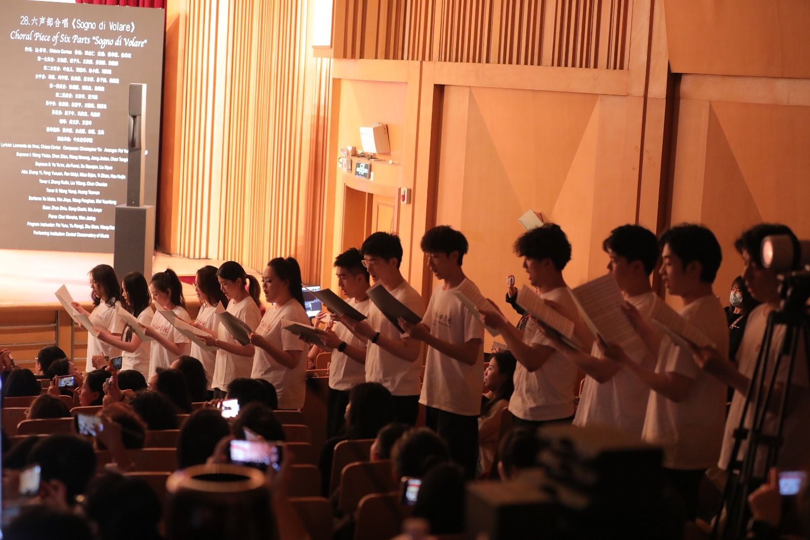 压轴节目由“东道主”开云kaiyun官方网站声乐歌剧系一至三年级的学生们排练两次后进行呈现,展示了声乐歌剧系视唱练耳课教学改革成果。这是一首改编自游戏“文明6”主题曲的六声部合唱《Sogno di Volare》。该作品和声效果空旷、浩瀚,演绎出宏大的史诗感,整场音乐会也在如此壮丽的音乐中准备迎接落幕。这首曲目的恢弘气势也表达出对视唱练耳学科发展的远大愿景。