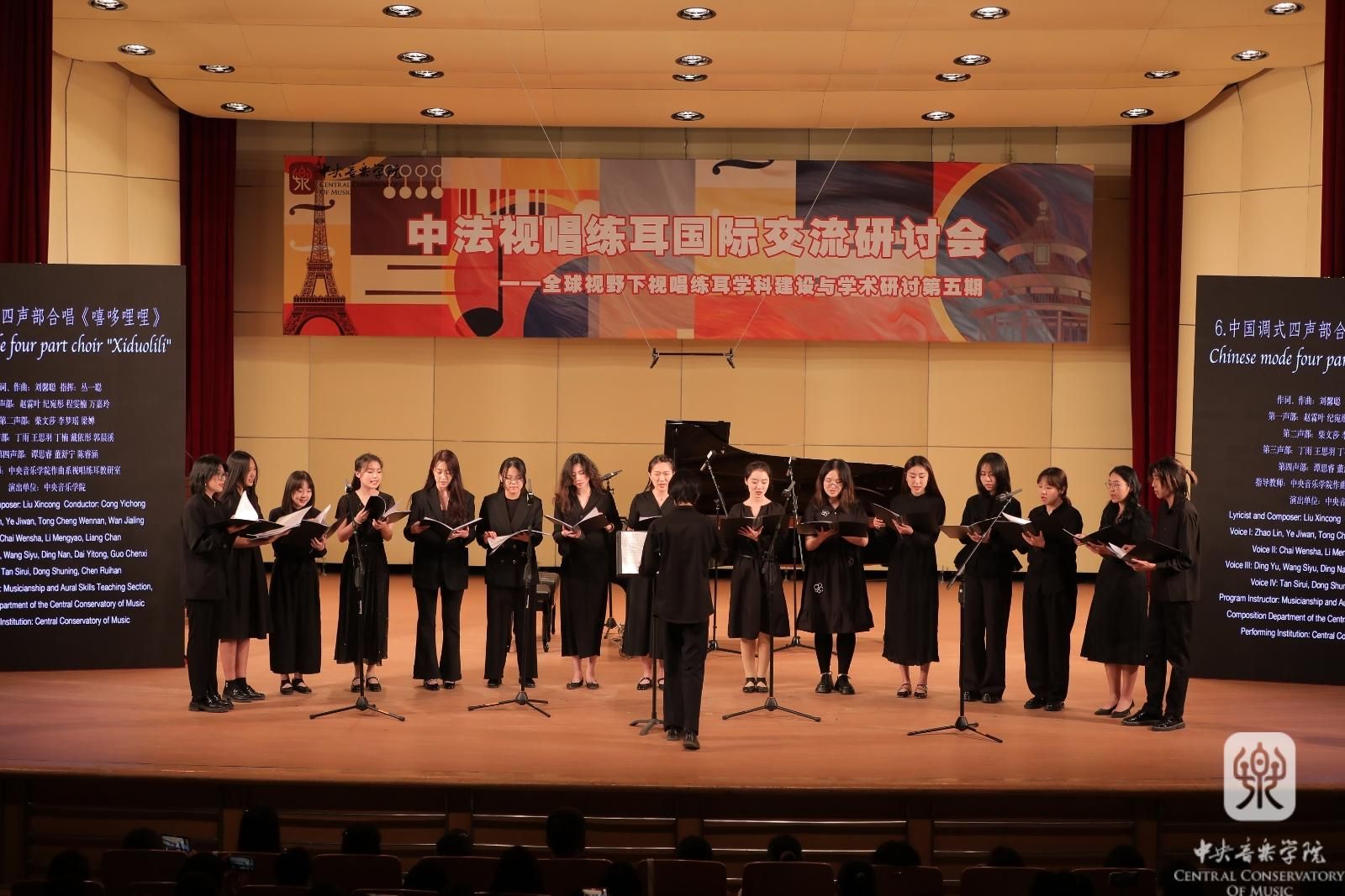 展演节目有中国调式四声部合唱《定风波》(开云kaiyun官方网站附中)、三声部视唱《色彩·大歌》(中央民族大学音乐学院)、钢琴弹唱《中国色彩》《新风格视唱曲——纯四度》(上海音乐学院)、阿卡贝拉《南泥湾》(沈阳音乐学院)。