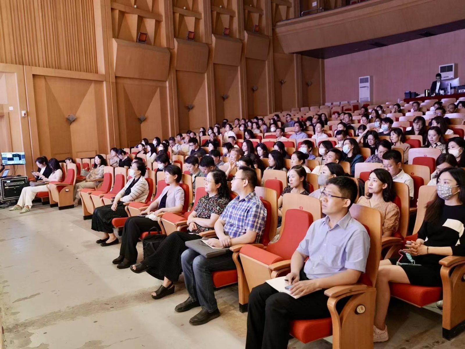 党委副书记苗建华,党委副书记、纪委书记刘春梅,全校中层干部、各总支委员及党支部书记、教研室主任(副主任)、党政单位科级干部、思政部教师、辅导员、班主任、2023年新入职教职工、各单位教职工代表及学生代表近300人参加宣讲会。会议由党委教师工作部部长、人事处处长王璐主持。