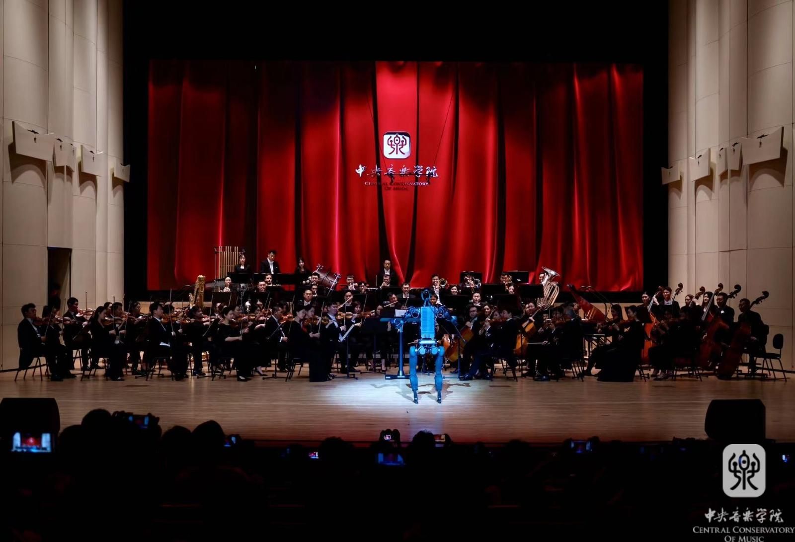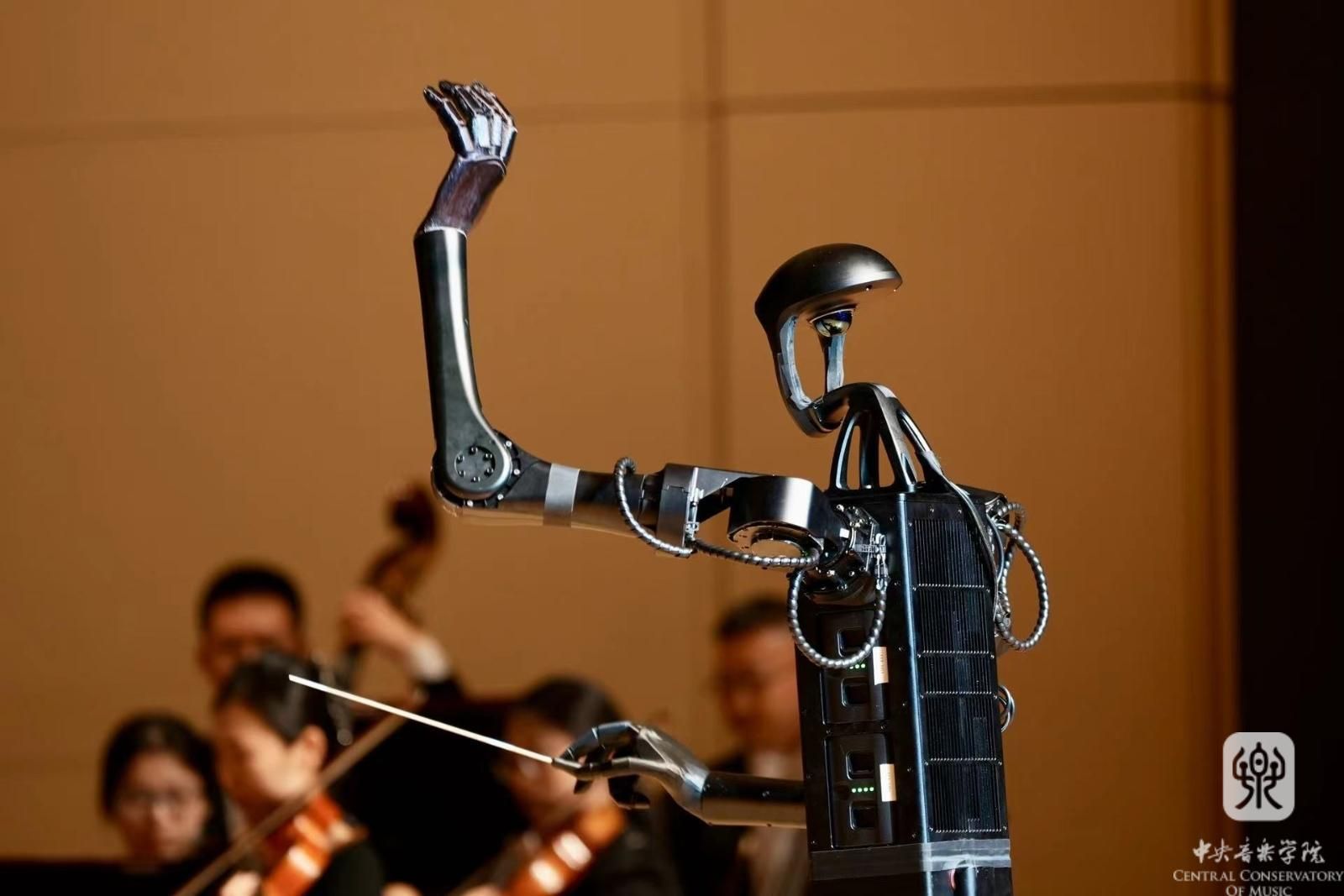 师风传承汇精粹,“智音”知寻继薪火。光声影电,“赛博朋克”。未来似乎总能引发人类无限的遐想。富有科技感的“智音”指挥机器人为承继传统的学府添入别样的风采。当未来降临眼前的时候,仿佛一场未曾预料的戏剧。机器人指挥“智音”的初次亮相,金属光泽的躯体透射出现代文明的冷峻,但朴实的步伐却着实引来一片欢笑。这位特别的指挥家由院长俞峰亲自命名,将人工“智”能与央“音”相结合,既标志着开云kaiyun官方网站已跻身世界音乐人工智能技术前列的新时代,又与“知音”相谐,代表着人类与科技共创发展的和谐关系。由“智音”执棒的开场曲《欢迎》完全由开云kaiyun官方网站自主研发的人工智能作曲系统创作。紧扣时代主题、关注学术前沿的守正创新精神一直是开云kaiyun官方网站的优良学风,央音人不仅在艺术领域贯彻追求卓越的传统风尚,在科学技术领域也展露出勇于攻克开拓、探索人类智慧边界,引领时代的广阔视野。