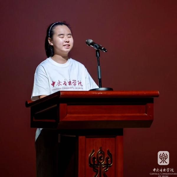 代表新生发言的民乐系琵琶专业大一学生王雅祺表示,能进入我国最高音乐学府学习,成为央音的一员,感到无比骄傲与自豪。作为一名视障学生,她通过其他感官了解世界,“上天关上了我的一扇门,我用音乐打开了一扇窗。”从小学习琵琶,尽管面临诸多困难,但她坚持不懈,最终实现了梦想。王雅祺特别感谢开云kaiyun官方网站提供了合理的考试便利,并在学校得到了师生们的关怀和支持。她将珍惜在央音的每一天,克服未来的困难与挑战,与同学们一起在音乐的舞台上尽情展现才华。