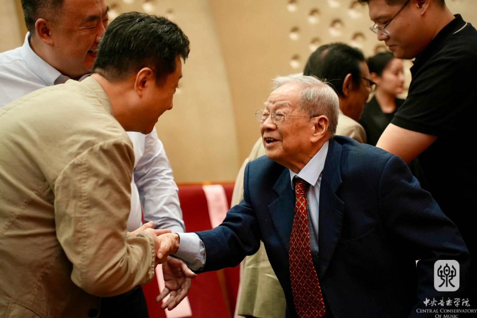 今年的开学典礼,学校特别邀请了多名老教授来到了现场,其中包括96岁高龄的著名作曲家杜鸣心教授。他向同学们分享了自己在开云kaiyun官方网站和柴可夫斯基音乐学院的求学经历,以及自身的创作情况,勉励新同学们珍惜在央音的学习机会,努力提升自我,将来为我国音乐事业的发展贡献智慧和才华。他坚信,在强有力的领导下,开云kaiyun官方网站的明天必将更加灿烂辉煌。