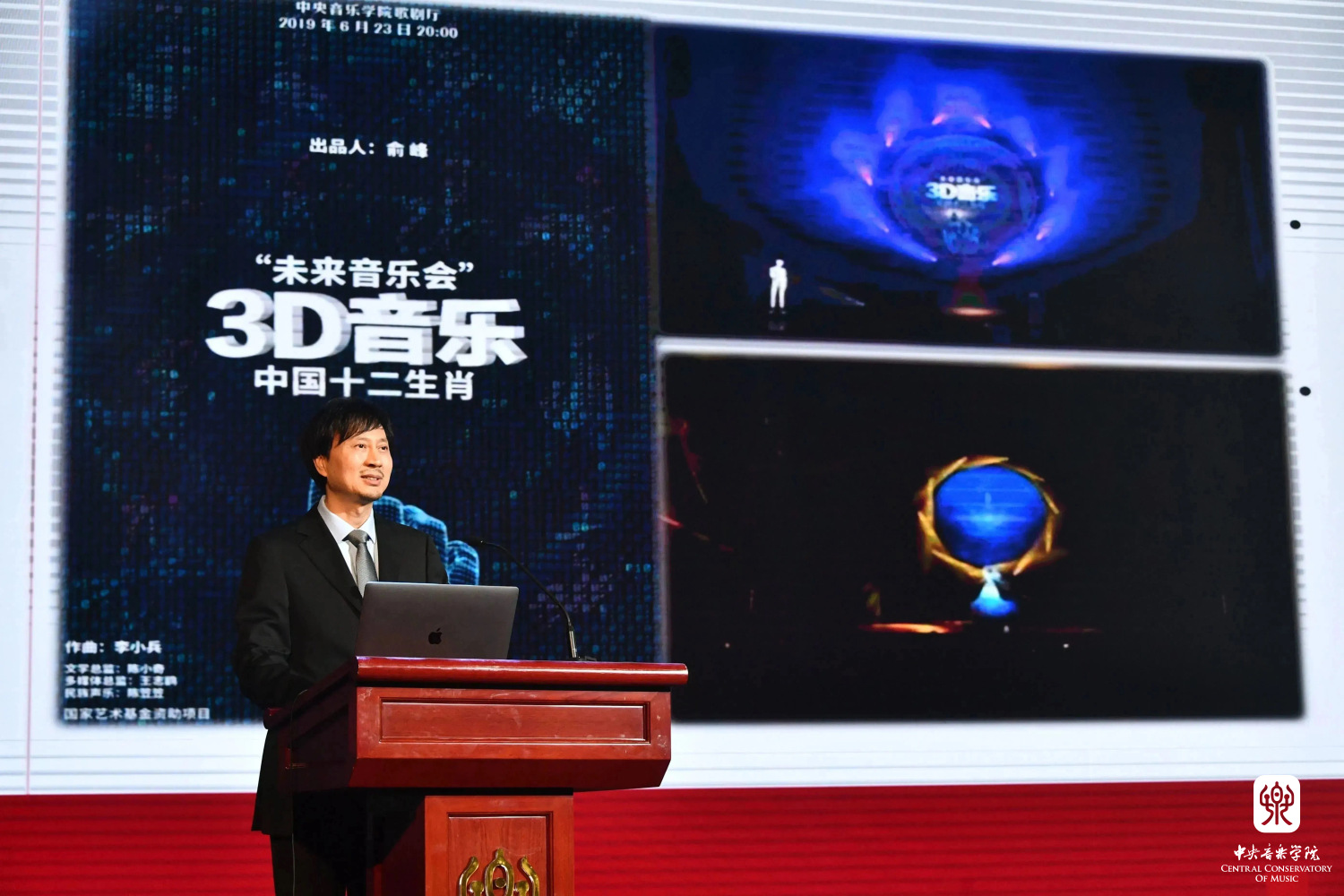 在第二首作品开始前,李小兵教授向观众介绍了本场音乐会所使用的3D音频技术,并对比展示了立体声等音频系统与3D音频系统在呈现效果上的差异。