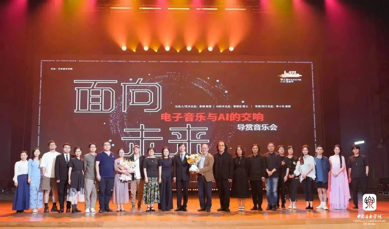 音乐会的最后,李小兵教授总结了艺术家面向未来的前行方向。他告诉观众,面对未来,我们不要害怕,我们要驾驭AI,人类未来将站在AI巨人的肩膀上前行。