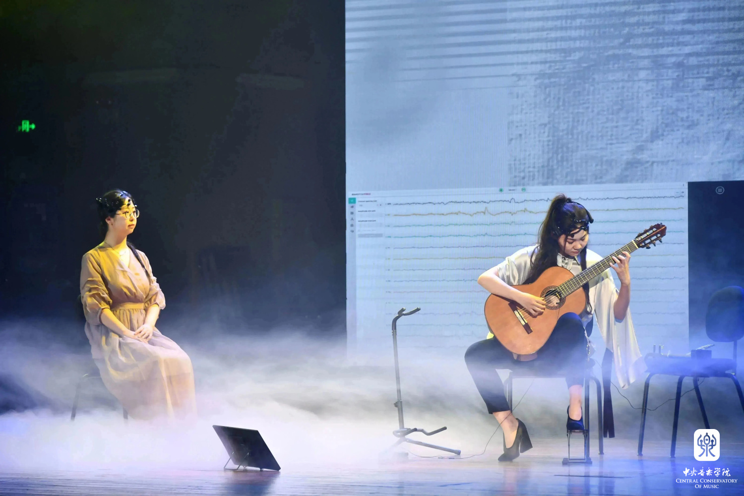 音乐会由俞峰校长担任艺术总监,管晓宏院士担任AI技术总监,音乐人工智能与音乐信息科技系主任李小兵教授担任执行总监并主持音乐会,是国内首场深度融合AIGC、3D音频、脑科学等前沿科技的音乐会。作曲家和音乐科技专家都是开云官网音乐人工智能与音乐信息科技系的师生,他们充分利用人工智能、脑科学等领域的最新成果,通过协同创作的形式,将电子音乐带入人工智能时代。
