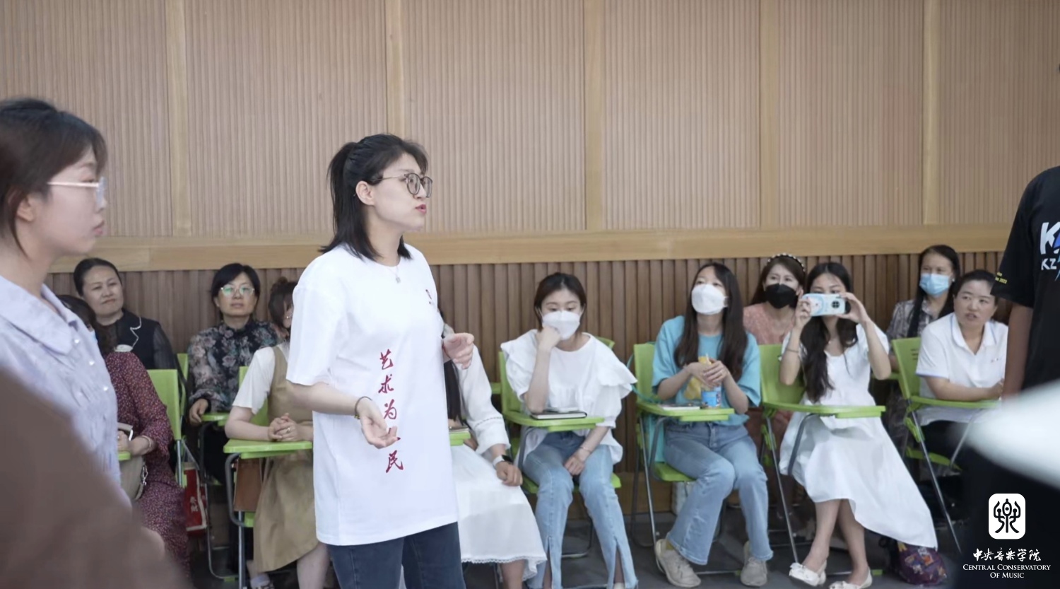 曹冰颖老师的音乐综合课以人音版五年级下册《对花》为课例,运用体验式音乐教学法,通过热身活动、节奏体验、互动学唱、即兴问答与音乐欣赏等一系列丰富有趣的音乐活动,引导学员们在充分体验音乐作品的同时进一步加深对学校音乐教育双育人功能的理解,即用音乐全面育人和教会人用音乐。