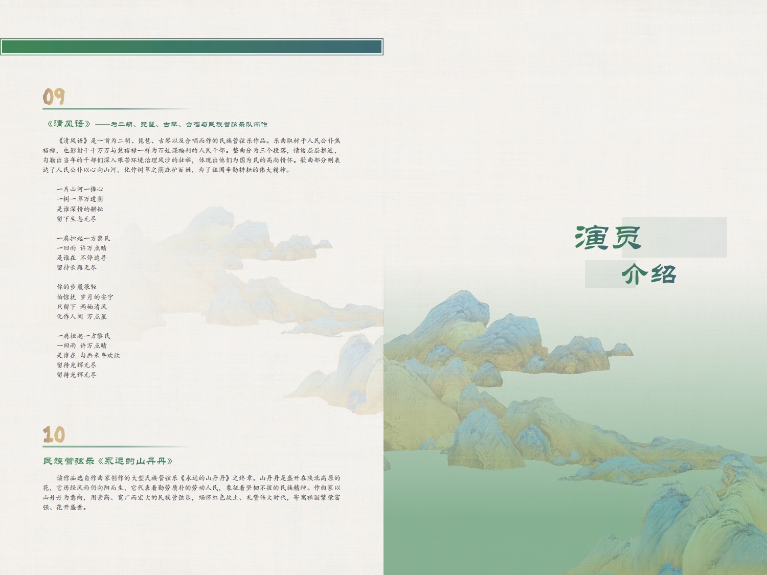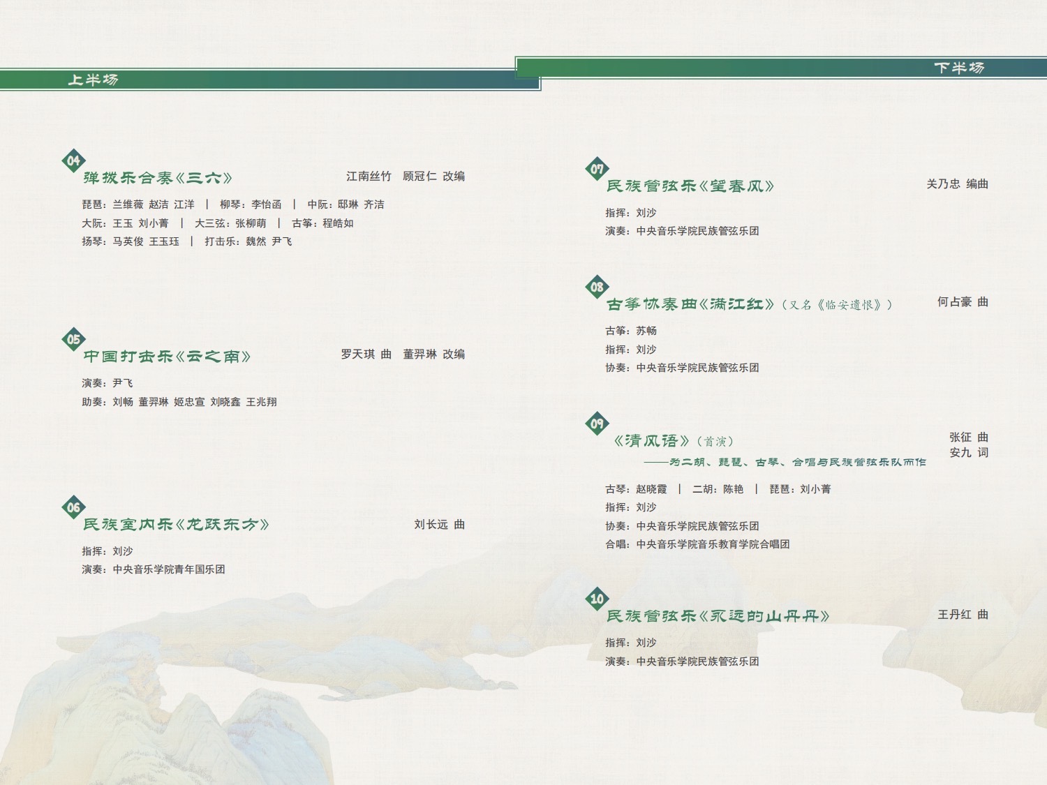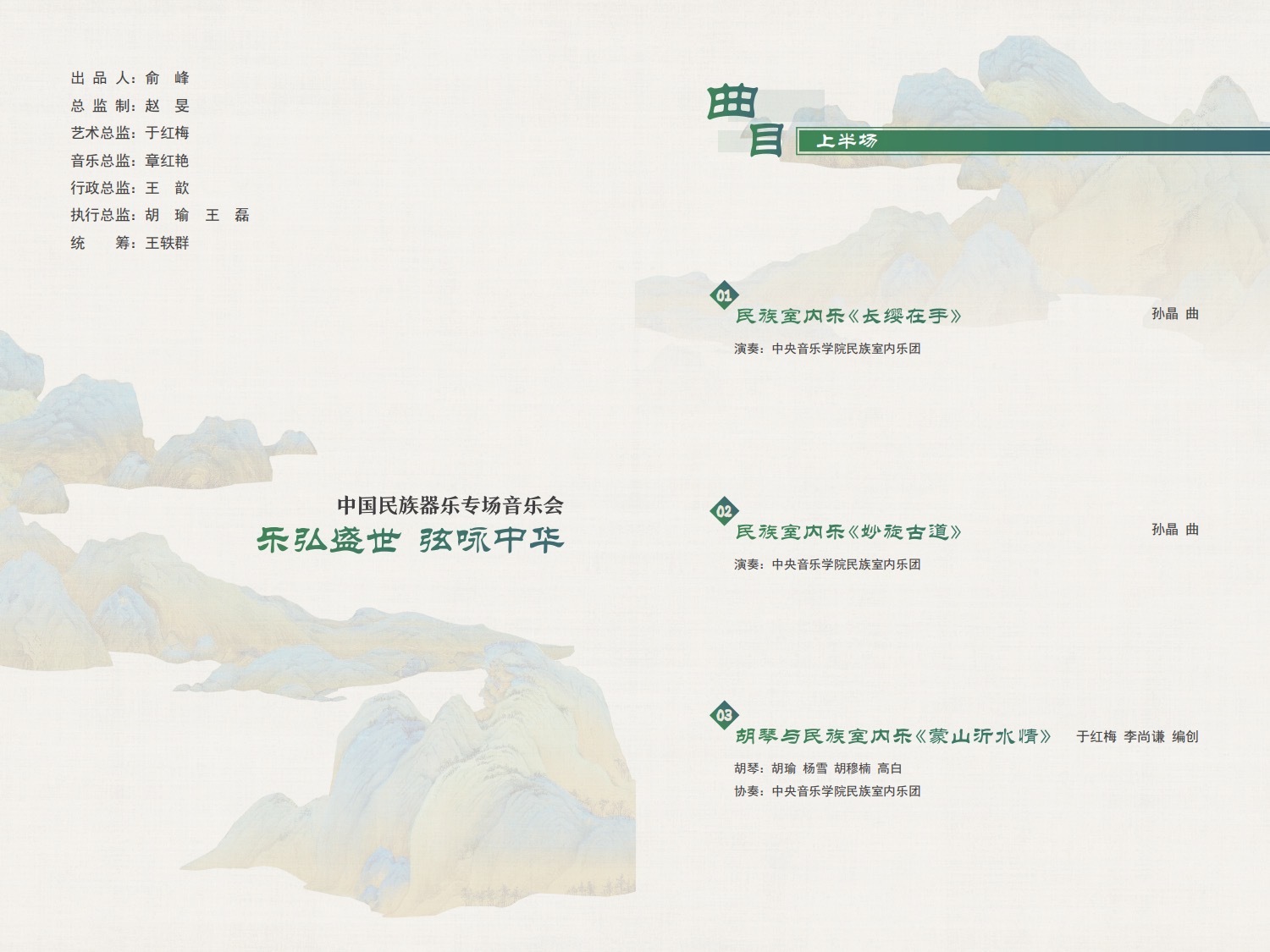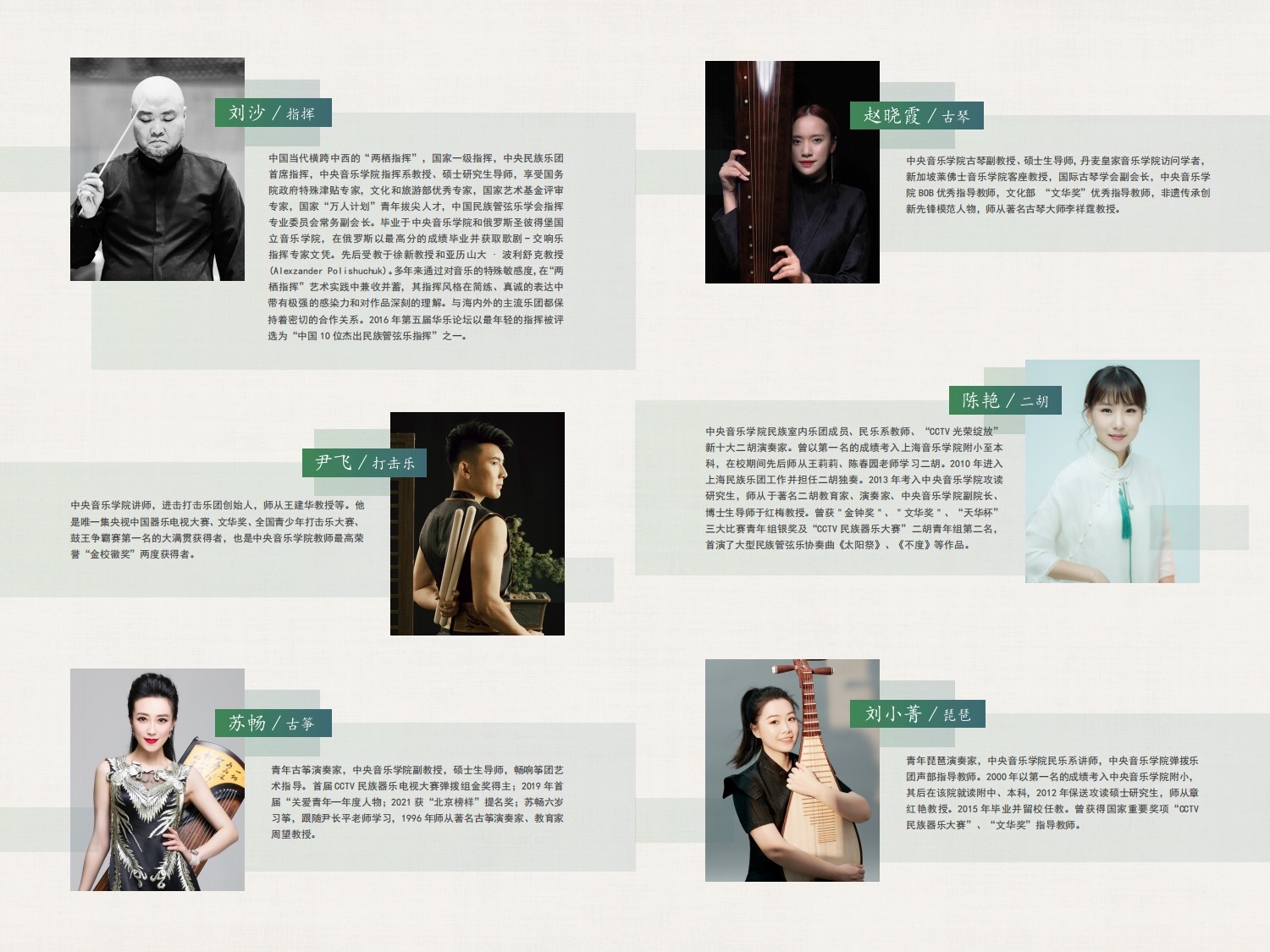 本场音乐会由开云kaiyun官方网站副校长于红梅担任艺术总监、民乐系主任章红艳担任音乐总监,特邀指挥家刘沙担任指挥,汇集以民乐系青年教师为主体组成的开云kaiyun官方网站青年民乐团,优秀毕业生组成的民族室内乐团及在校师生组成的民族管弦乐团,构建顶尖演出阵容,携手音乐教育学院合唱团等优秀师生同台共演。以重奏、协奏、合唱、民族管弦乐多种形式,奏响《蒙山沂水情》《三六》《清风语》(首演)《永远的山丹丹》等经典、编创、原创作品。以人民性、时代性、民族性的精神内涵,融入音乐会的创作与演绎,展现中华儿女意气昂扬的当代风貌、涵养于中华文化的家国情怀与为国为民奋斗奉献的崇高精神。