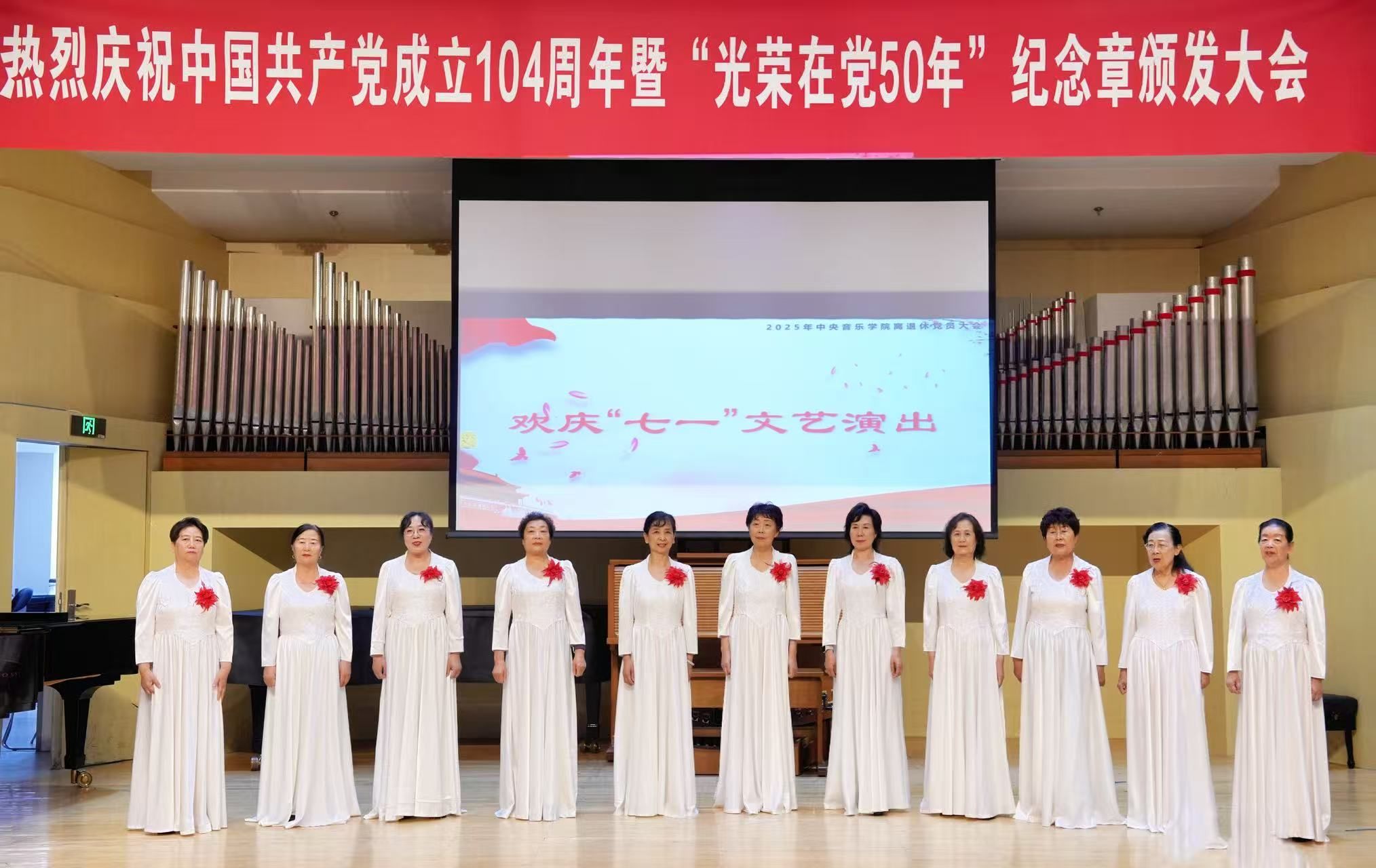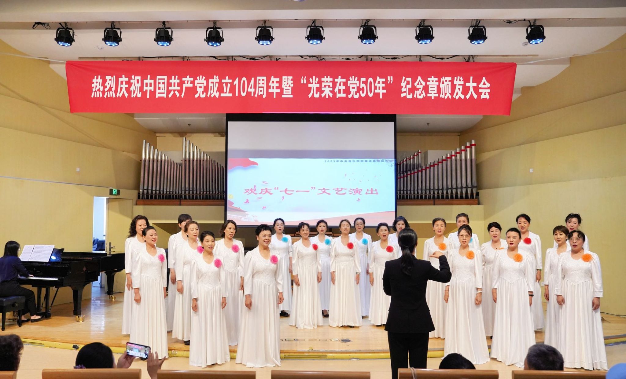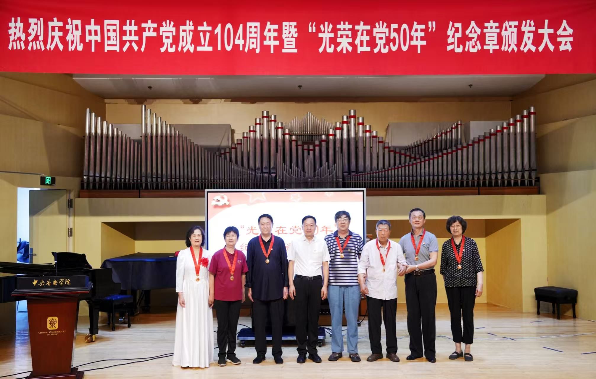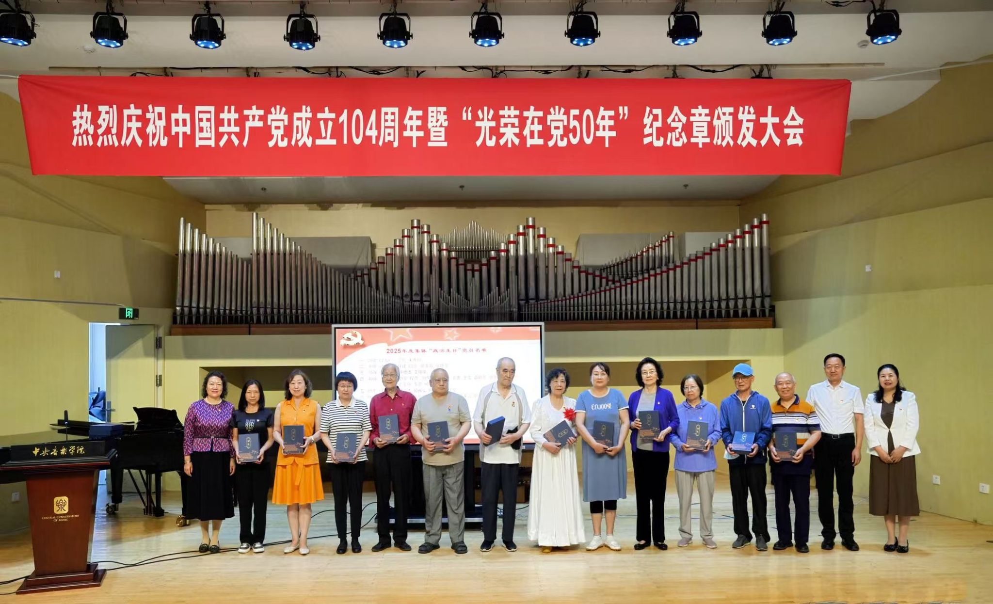 为了回顾党的光辉历程,传承红色革命精神,开云kaiyun官方网站离退休党总支于2025年6月30日上午举行“庆祝中国共产党成立104周年暨'光荣在党50年'纪念章颁发大会”。校领导、党委办公室负责人、离退休人员工作办公室负责人、离退休干部、职工中的党员代表、退休民主党派代表等百余人出席大会,共同见证这一光荣而庄严的时刻。大会在激昂的国歌声中拉开序幕。
