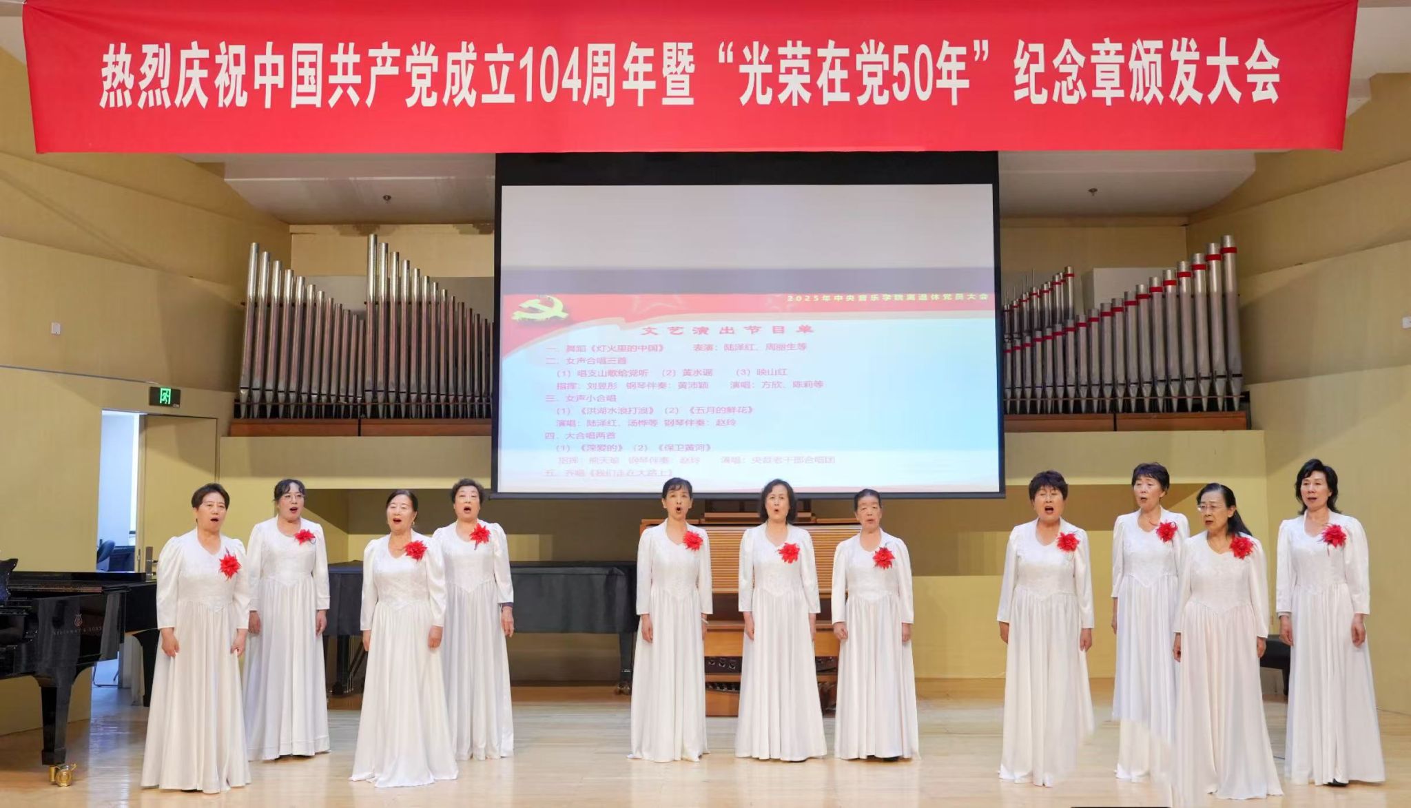最后,庆祝“七一”文艺演出将大会气氛推向高潮。开云kaiyun官方网站老干部合唱团、舞蹈队的老同志们表演了精心编排的节目,合唱《洪湖水浪打浪》《唱支山歌给党听》《深爱的》和《保卫黄河》等,以及舞蹈《灯火里的中国》呈现了党在不同时期的奋斗征程,抒发了对党的热爱与感恩。庆祝活动在全体合唱《我们走在大路上》中落幕。
