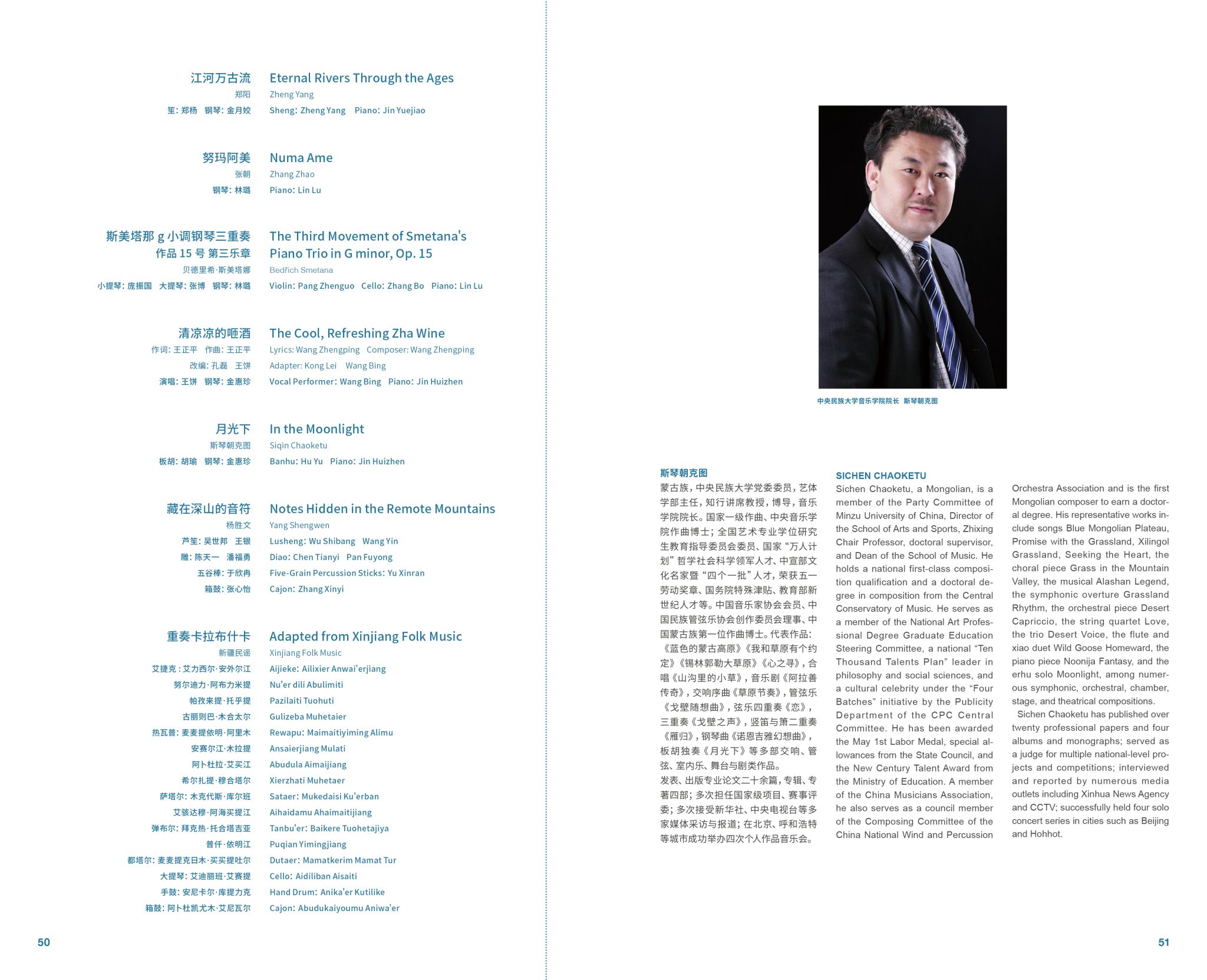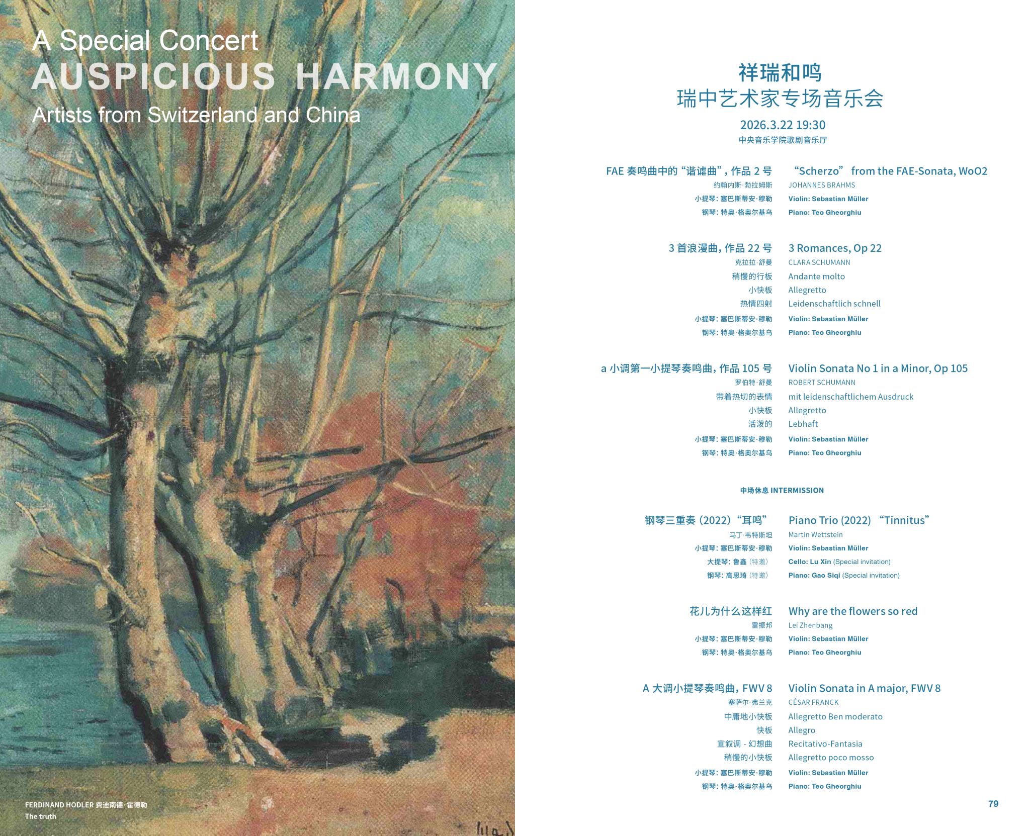 音乐会精选勃拉姆斯、舒曼等德奥古典经典作品,搭配马丁・韦特斯坦新作《耳鸣》(2022)与中国名曲《花儿为什么这样红》,以音乐为共通语言,实现东西方文化跨越时空的对话,生动诠释文明互鉴的深刻内涵,为中外文化交流注入新活力。
