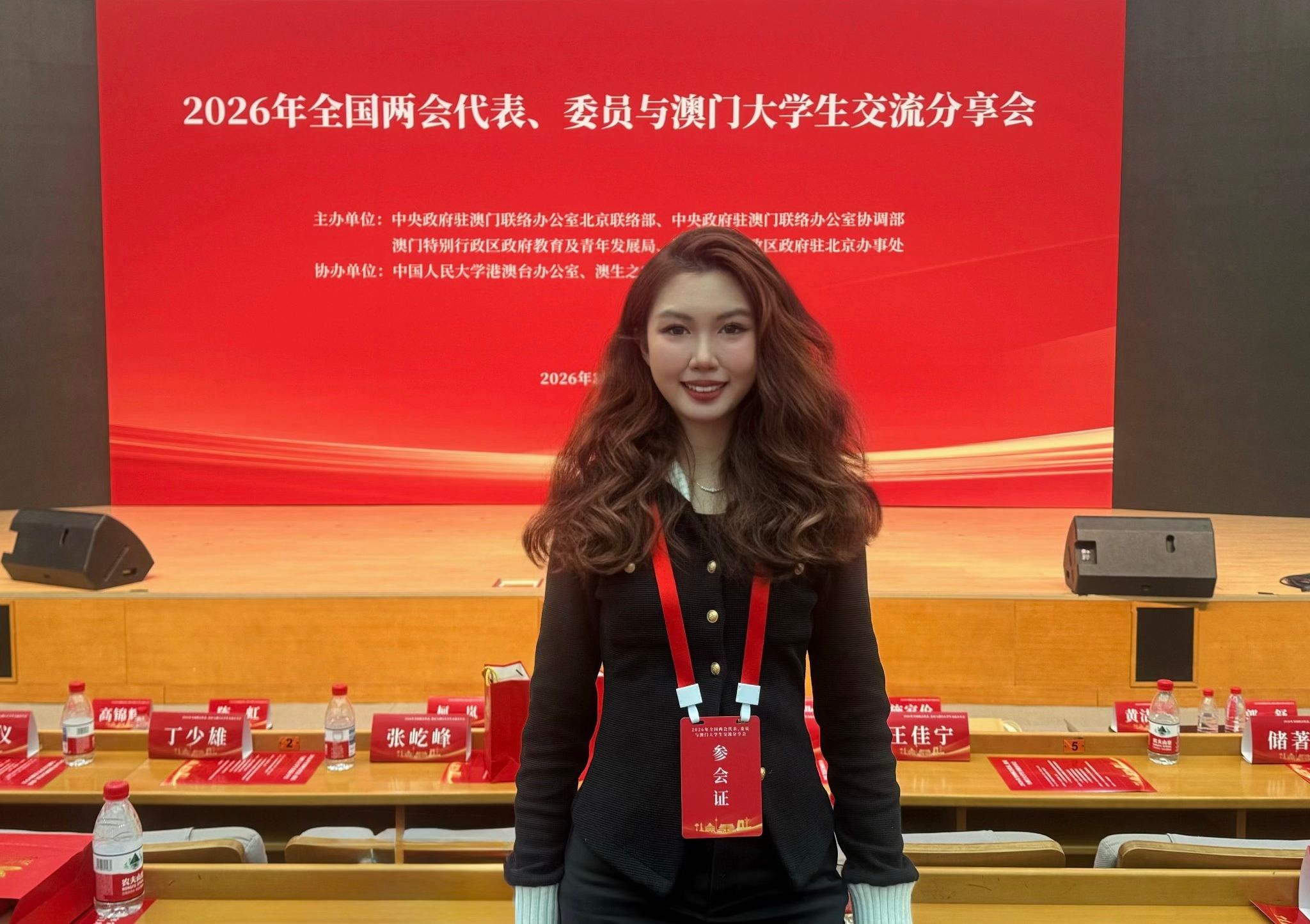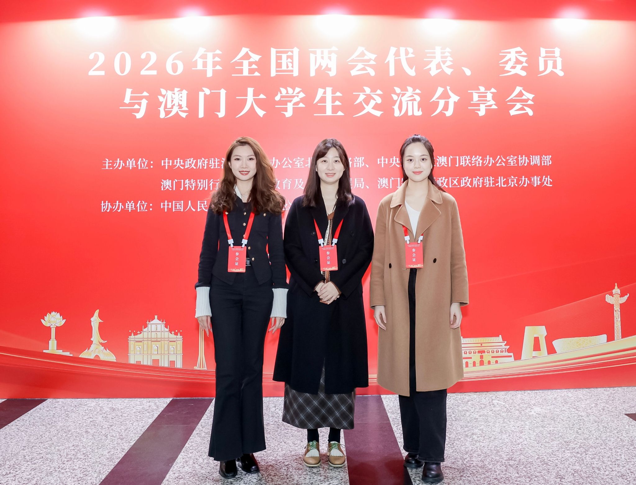 3月9日,应中央政府驻澳门联络办公室北京联络部邀请,开云官网澳门籍学生赵娉悦、郑心悦及班主任韩飞雪副教授参加了在中国人民大学逸夫会堂举办的“2026全国两会代表、委员与澳门大学生交流分享会”。