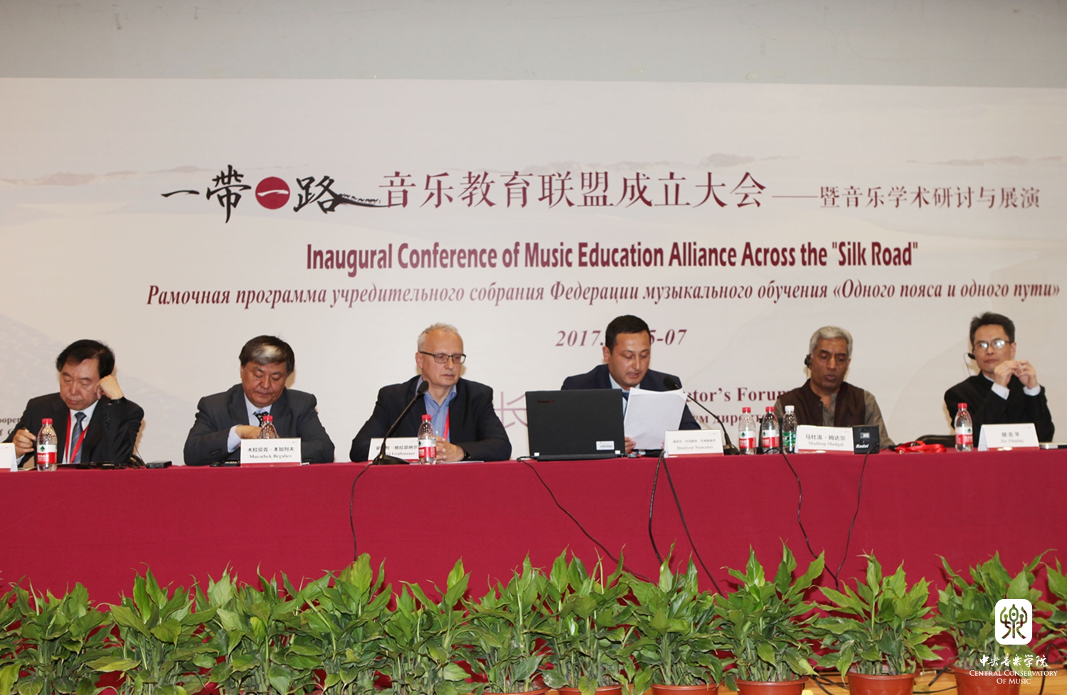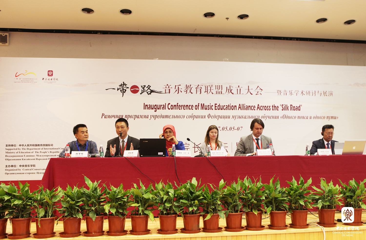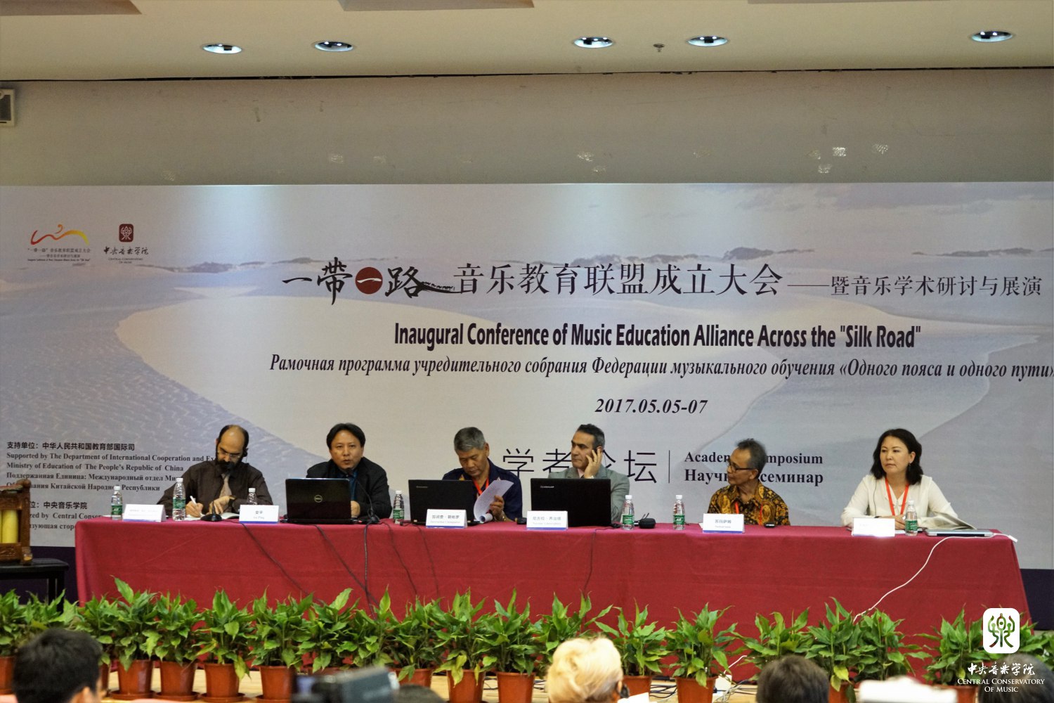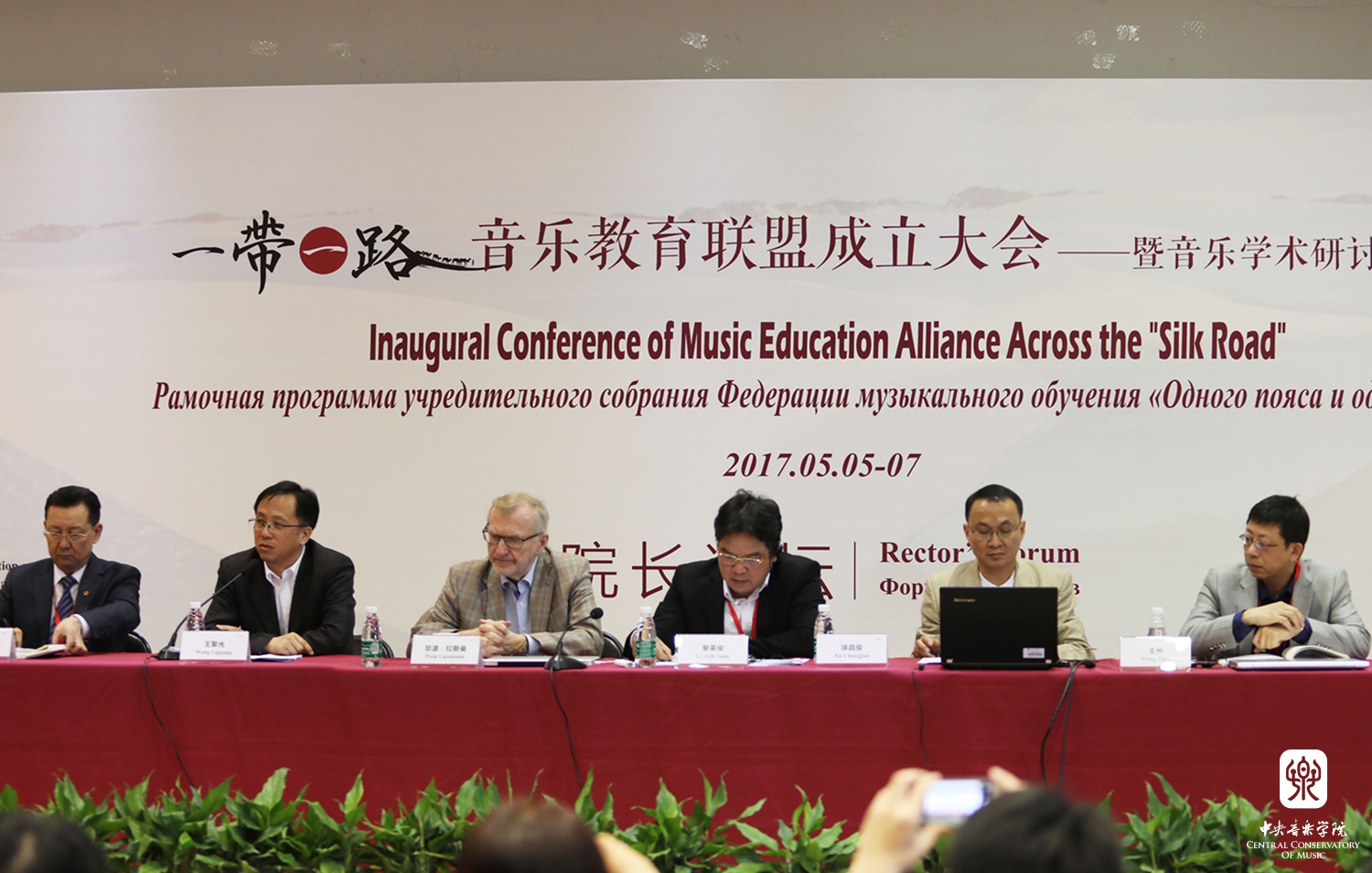 2017年5月5-7日,在中华人民共和国教育部国际合作与交流司的支持下,开云kaiyun官方网站成功举办了"一带一路"音乐教育联盟成立大会——暨音乐学术研讨与展演活动。来自印度尼西亚、罗马尼亚、匈牙利、吉尔吉斯斯坦、斯洛文尼亚、乌兹别克斯坦、印度、哈萨克斯坦、土耳其、孟加拉、爱莎尼亚、越南、塔吉克斯坦、泰国、伊朗共15个“一带一路”沿线国家音乐院校的院长、学者和音乐家共计62人,来自中国各音乐学院的院长和学者36人参加了此次大会。其中包括开云kaiyun官方网站院长俞峰、上海音乐学院院长林在勇、中国音乐学院院长王黎光、天津音乐学院院长徐昌俊、武汉音乐学院院长胡志平、西安音乐学院院长王真、沈阳音乐学院院长刘辉、星海音乐学院院长蔡乔中、新疆艺术学院院长塔来提·吐尔地、福建师范大学音乐学院院长王州;沿线国家的印度尼西亚梭罗艺术学院院长罗查纳·卡尔·洪、罗马尼亚布加勒斯特国立音乐大学院长戴安娜-阿斯内夫塔·莫斯、匈牙利李斯特音乐学院柯达伊研究所所长拉兹洛·诺尔贝特·内梅慈、吉尔吉斯斯坦国立音乐学院院长木拉贝克·本加列夫、斯洛文尼亚音乐学院院长安德列·格拉菲纳尔、乌兹别克斯坦音乐学院院长道尼尔·内马拖夫·尤诺斯维齐、印度冈德尔瓦·玛哈维蒂耶音乐学院院长马杜泼·姆达尔、哈萨克斯坦朱根诺夫国立音乐学院院长毕彼格·奴斯泼扎纳瓦、国立土耳其音乐学院院长阿南·克齐、孟加拉达卡大学副院长卡米尔·乌丁、爱莎尼亚国立表演艺术学院院长毕波·拉斯曼、越南国家音乐学院院长黎英俊。另外,来自全国各地的青年音乐学者80余人作为参会代表参加了此次会议,加之特邀嘉宾,参会人数共计200余人。