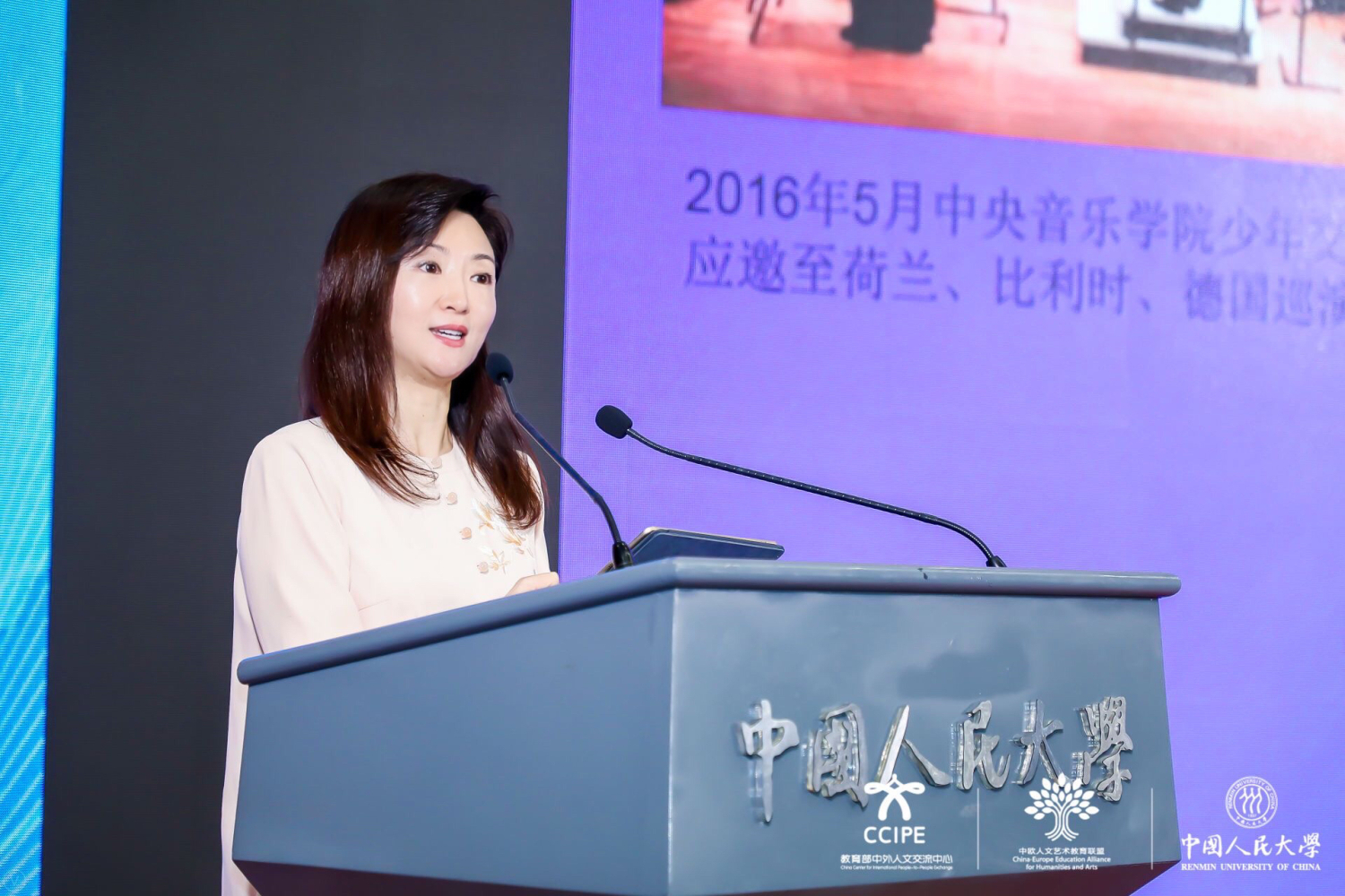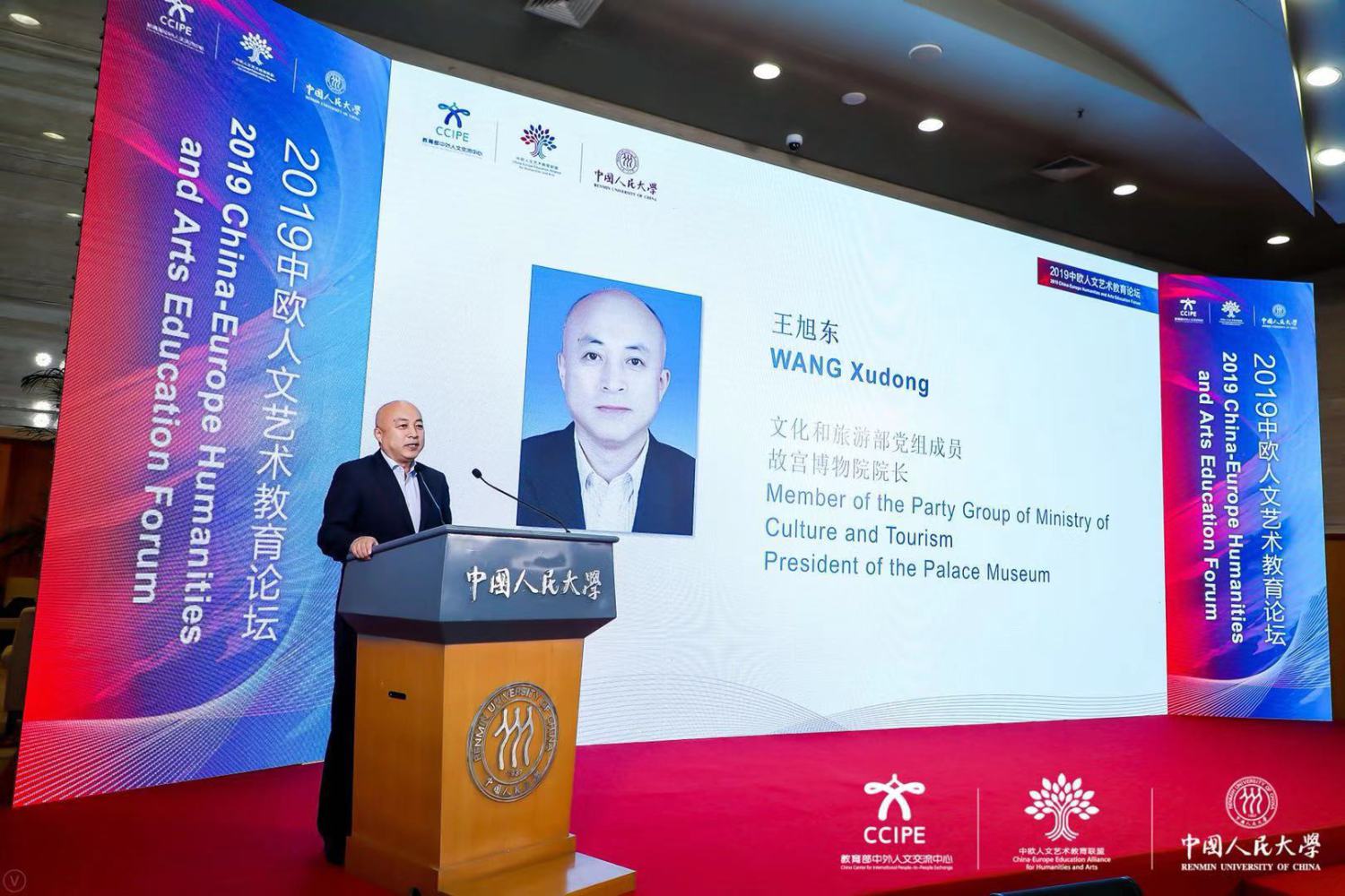 2019中欧人文艺术教育论坛由中国教育部中外人文交流中心主办,中欧人文艺术教育联盟和中国人民大学承办。作为中欧人文艺术教育联盟开展的第一次论坛,邀请了北京市市委常委、北京市教工委书记、国家大剧院院长王宁先生,文化和旅游部党组成员、故宫博物院院长王旭东先生,中国人民大学党委书记靳诺女士、教育部中外人文交流中心主任杜柯伟先生、教育部国际司副司长李海先生、文化和旅游部国际局二级巡视员项晓炜先生、外交部欧洲司参赞林航女士、意大利驻华使馆文化参赞孟斐璇先生等嘉宾以及来自北京市委宣传部、中国文化产业发展集团有限公司、中国电视艺术家协会、英国中央兰开夏大学、北京舞蹈学院、北京师范大学艺术与传媒学院、中央戏剧学院、中国服装协会等多位专家一同参会,就青少年人文艺术教育、新文旅、人文艺术教育与科技创新、人文艺术作品的翻译和跨文化传播等多领域展开了热烈的讨论,共同为人文交流事业献言建策。作为主旨演讲嘉宾中唯一一位音乐家,于红梅副院长代表开云kaiyun官方网站、代表俞峰院长向中欧人文艺术教育论坛的成功举办表示衷心祝贺!