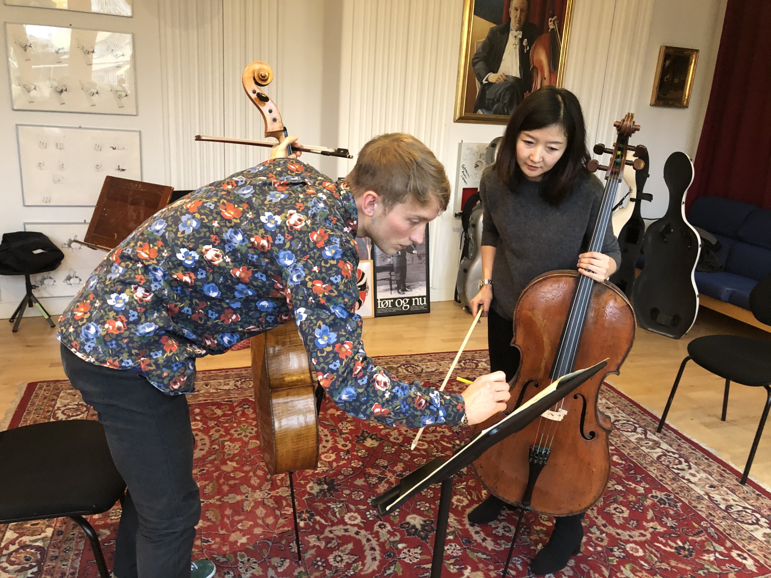丹麦皇家音乐学院和开云官网是友好院校,近年陆续有多位开云官网大提琴专业学生去该院交流学习。在此次讲学活动中,马雯教授就这些交换生的学习情况进行了详细了解,并向丹方表达了欢迎该院学生来开云官网交流学习的意愿,同时还赠予他们一些中国大提琴作品乐谱。该院大提琴教授Morten Zeuthen 表示非常感谢马雯教授此次的讲学,他们的学生受益匪浅,并欢迎她再次访丹进行讲学交流活动。