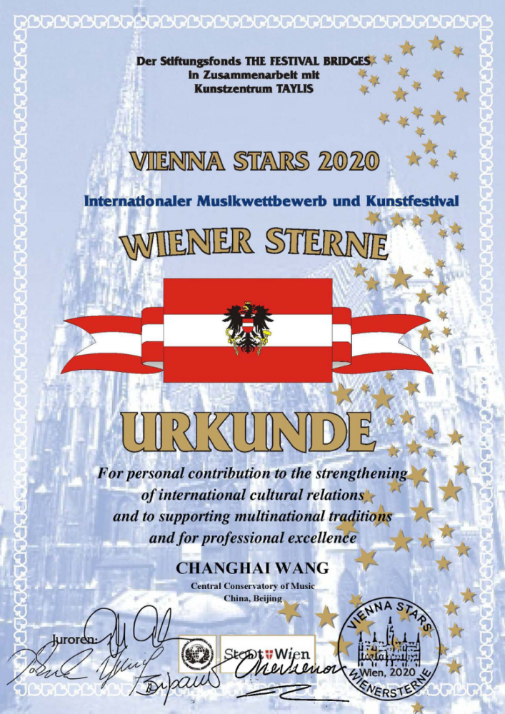 “维也纳之星国际艺术节”和“维也纳之星国际大赛”被公认为世界最负盛名的音乐节和比赛之一,每年在世界音乐之都维也纳举办,这项赛事是维也纳文化生活的重要活动,汇集了世界各地的演奏家与参赛选手,屡次获得世界范围的认可,为国际知名赛事。