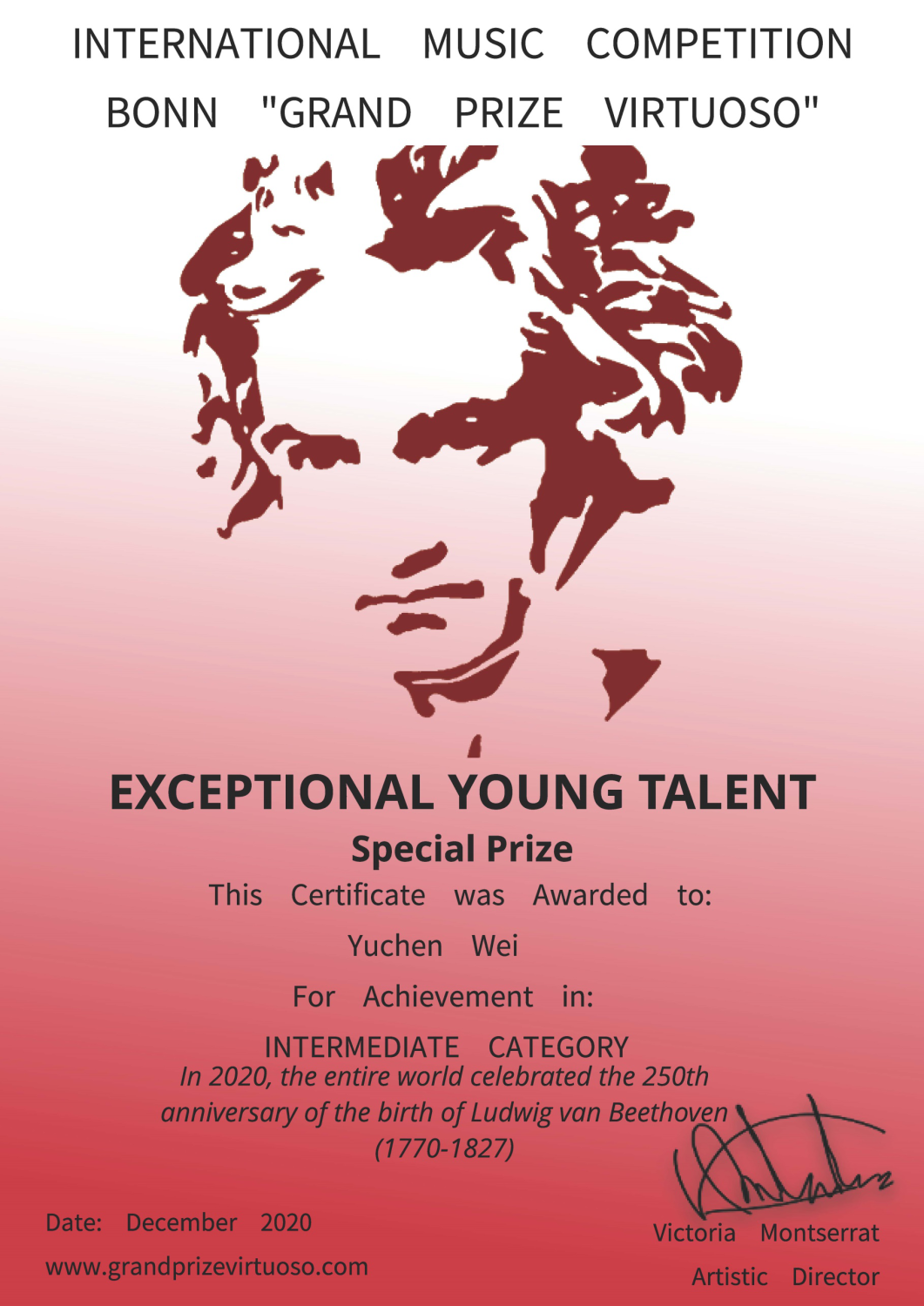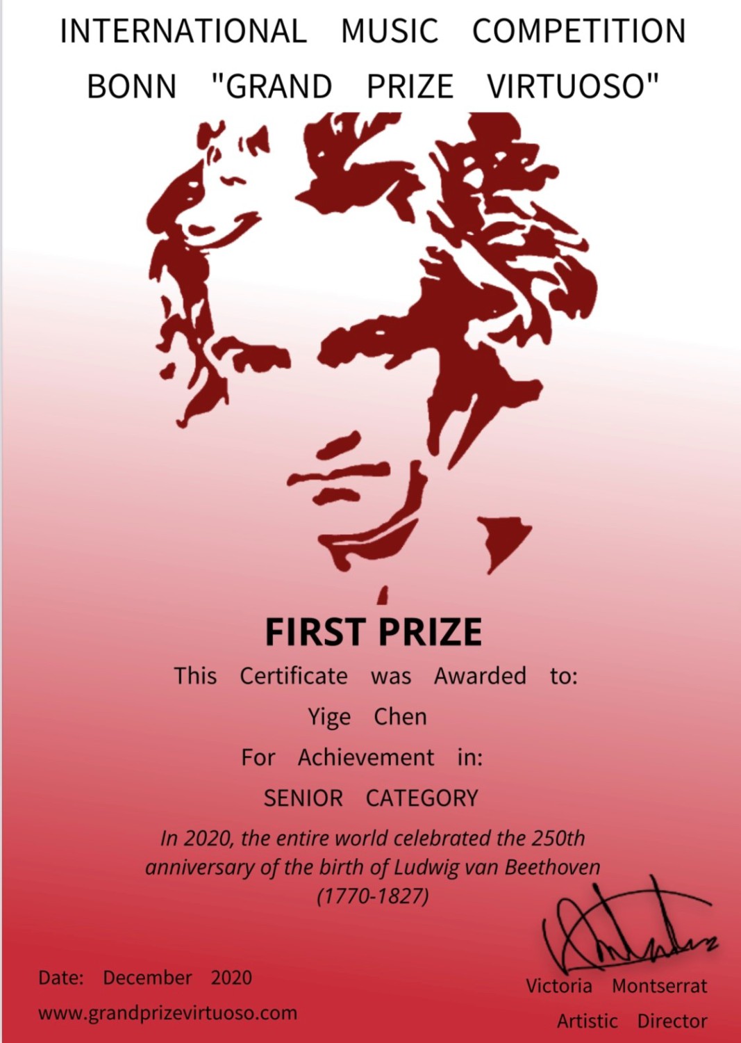 荣获2020波恩国际音乐比赛“艺术家大奖赛”一等奖