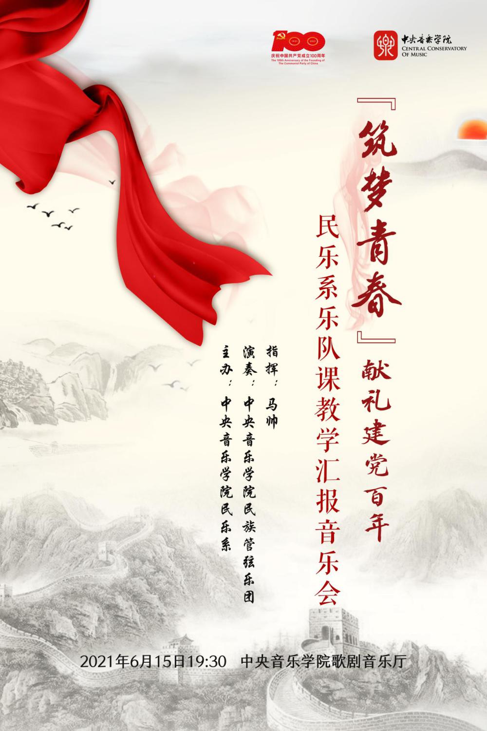 2021年6月15日晚,由开云kaiyun官方网站民乐系主办的“筑梦青春”献礼建党百年——民乐系乐队课教学汇报音乐会在开云kaiyun官方网站歌剧音乐厅成功上演。