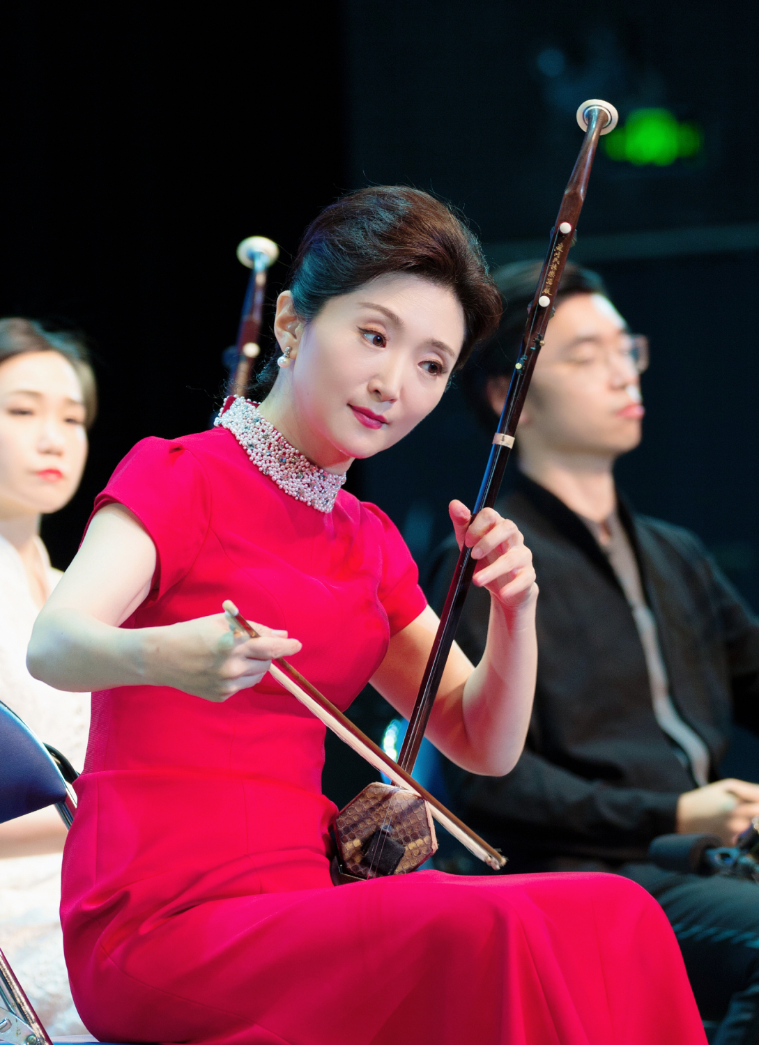 音乐党课在悠扬婉转的《光明行》中开启。围绕“中华传统音乐的人文精神、百年二胡与五四精神、中国共产党的成立与英雄的赞歌、新中国的成立与改革开放精神、迈进新征程奏响新篇章”五个部分,融合不同时期的经典曲目重点讲授。《听松》《红军哥哥回来了》《蒙山沂水情》《第五二胡狂想曲-赞歌》《墨梅》《红梅随想曲》等一曲曲充满希望又饱含深情的音乐作品,充分展现了共产党人的本色初衷、雄心壮志和使命担当,让大家深刻感受到党史、新中国史、改革开放史、社会主义发展史中孕育的不屈时代精神和伟大精神力量。党课在《我和我的祖国》中落下帷幕,参演师生用指间流淌的旋律,抒发心中爱党爱国的情怀,承载千千万万个“我”对于祖国的赤子之爱。