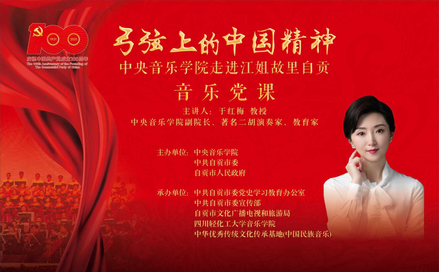 6月19日晚,于红梅副校长在四川轻化工大学开启音乐党课。“千年历史,百年二胡。”于红梅教授将二胡的起源、发展及其在中国传统文化中的地位和价值娓娓道来。用独特的音乐视角精心创作的《弓弦上的中国精神》音乐党课,围绕党的历史进程,精选百年来的经典力作,以讲演结合的形式,将历史性和艺术性高度融合,用音乐艺术展现中国共产党不忘初心、砥砺前行的壮丽史诗。党课由中共自贡市委副书记唐强主持,市委书记范波,市委常委、市纪委书记、市监委书记李文星等领导出席。自贡市委、市人大、市政府、市政协相关领导同志、市委党史学习教育活动领导小组成员单位主要负责人、自贡市各级党组织党员代表及四川轻化工大学领导师生等,共计1000余人聆听了音乐党课。