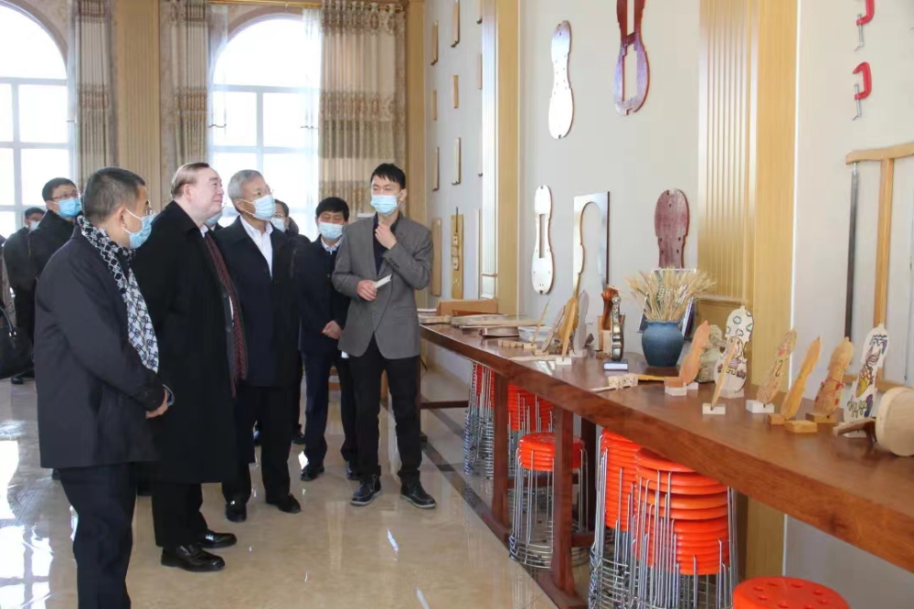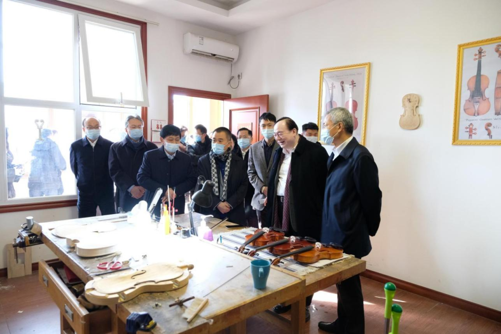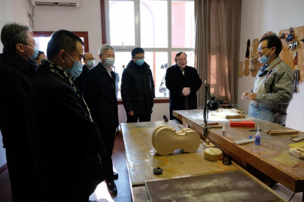 与会领导考察参观华东乐器有限公司提琴制作工作坊