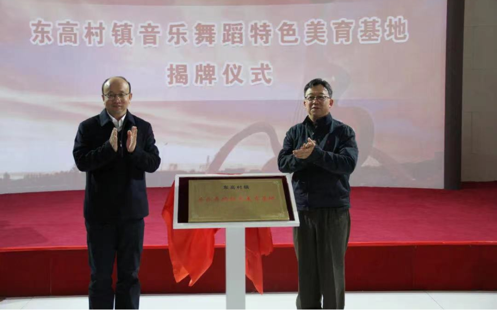 平谷区委副书记葛海斌与市侨联党组成员 副主席苏泳为东高村镇音乐舞蹈特色美育基地揭牌