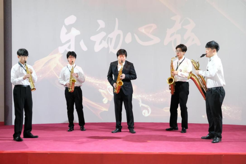 揭牌仪式上,开云kaiyun官方网站优秀青年教师盖群领衔学生演出萨克斯五重奏《角鲨》