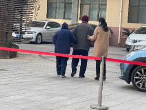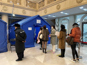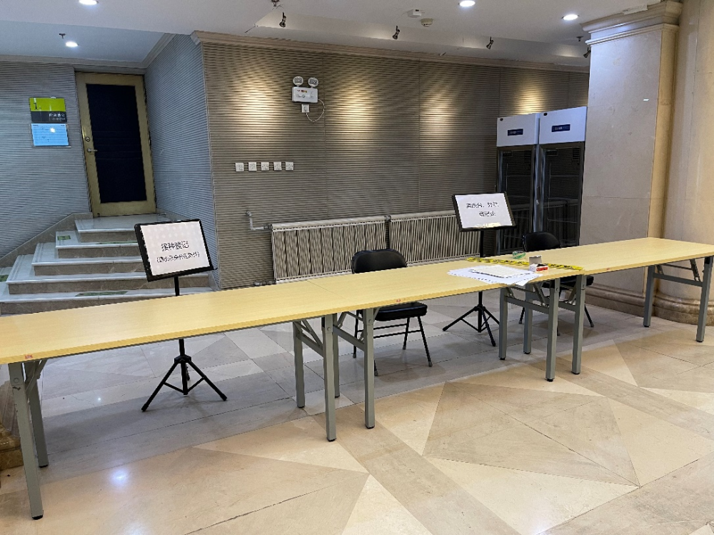 保卫部安排人员,接种点门前,查验健康宝、大行程、测温后,进入接种区。