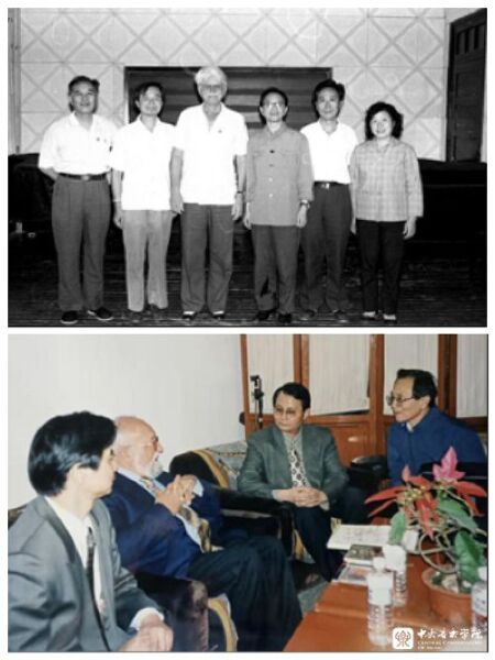 下,1998年,学校领导热情接待来访的波兰著名作曲家潘德列茨基,钟子林教授参与会见。